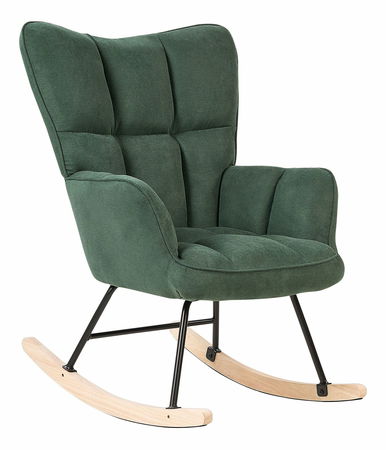 Vytvorte si doma útulný kútik, kde budete môcť relaxovať. Toto hojdacie kreslo so zeleným polyesterovým čalúnením dopĺňa trendové prešívanie. Nohy so spodnou časťou vyrobenou z kaučukového dreva zabezpečia pomalé hojdanie a kreslo sa stane skvelým doplnkom obývacej izby alebo spálne, ale aj detskej izby. Sadnite si doň s dieťaťom v náručí a sledujte, ako v okamihu zaspí. Vďaka farbe a dizajnu ho možno zladiť s rôznymi štýlmi interiérového zariadenia – od retro až po iné súčasné štýly.