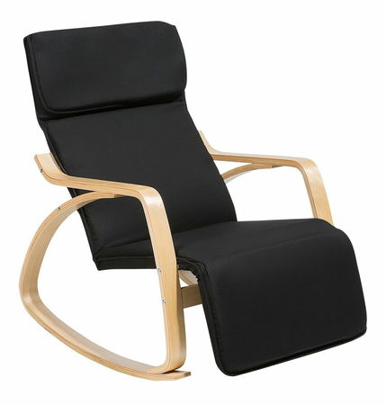 Toto hojdacie kreslo je kombináciou klasického dizajnu a moderného prevedenia a vďaka hrubo čalúnenému sedadlu ponúka výnimočný komfort. Tvarované opierky rúk a profilované operadlo s opierkou hlavy poskytujú úplnú relaxáciu. Kvalitné polyesterové čalúnenie v čiernej farbe krásne ladí s nohami z brezového dreva.