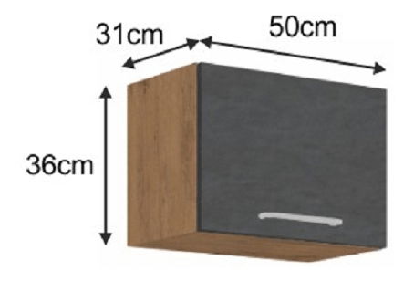 Horná kuchynská skrinka 50 GU-36 1F Velaga (sivá matná + dub lancelot) je skvelým doplnkom pre každú modernú kuchyňu. Vďaka svojim kompaktným rozmerom s výškou 36 cm, šírkou 50 cm a hĺbkou 31 cm, sa ľahko zmestí do akéhokoľvek priestoru. Skrinka je vyrobená z kvalitných materiálov a jej dizajn v kombinácii sivého matného a duba lancelot vytvára harmonický celok. Na vnútornej strane skrinky sa nachádza jedna polica, ktorá umožňuje efektívne uskladnenie kuchynských potrieb. S týmto produktom získate nielen praktické riešenie pre vašu kuchyňu, ale aj moderný dizajn, ktorý určite poteší vaše oko.