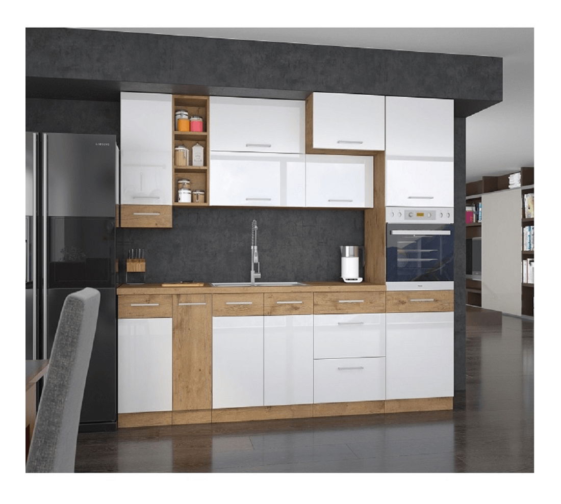 Horná kuchynská skrinka 60 NAGU-36 1F Velaga kombinuje moderný dizajn s praktickosťou. Vďaka výške 36 cm, šírke 60 cm a hĺbke 57 cm poskytuje dostatok úložného priestoru pre kuchynské potreby. Skrinka je vyrobená z kvalitných materiálov a je k dispozícii v kombinácii biely lesk a dub lancelot. Skrinka dodáva kuchyni elegantný vzhľad a jej jednoduché ovládanie umožňuje ľahkú manipuláciu s nádobami a kuchynskými doplnkami. Ak hľadáte praktickú a zároveň štýlovú skrinku do kuchyne, Horná kuchynská skrinka 60 NAGU-36 1F Velaga je tou správnou voľbou pre vás.