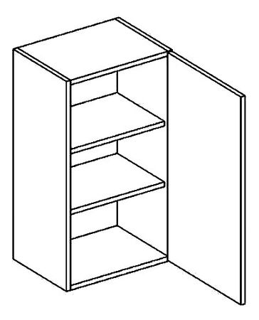 Horná kuchynská skrinka s dvierkami a úložným priestorom s dvomi poličkami. Vyobrazená skrinka je s pravým otváraním dvierok.