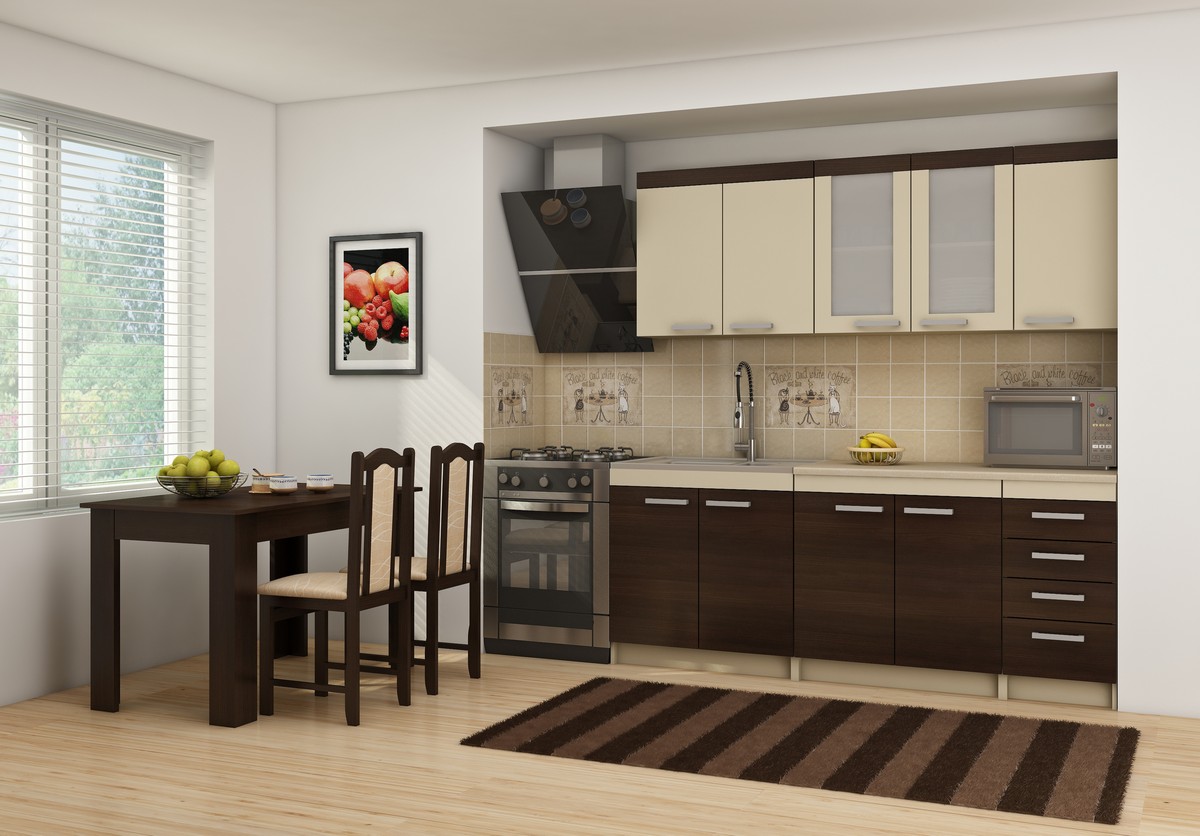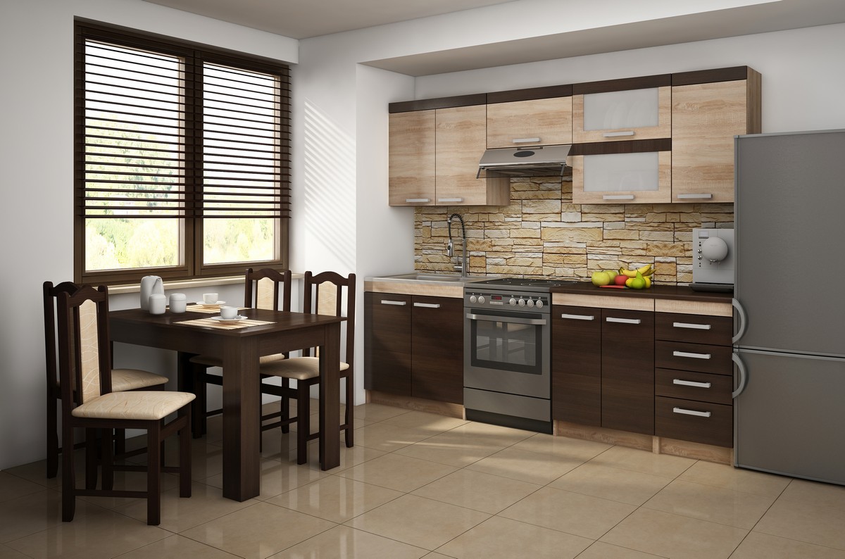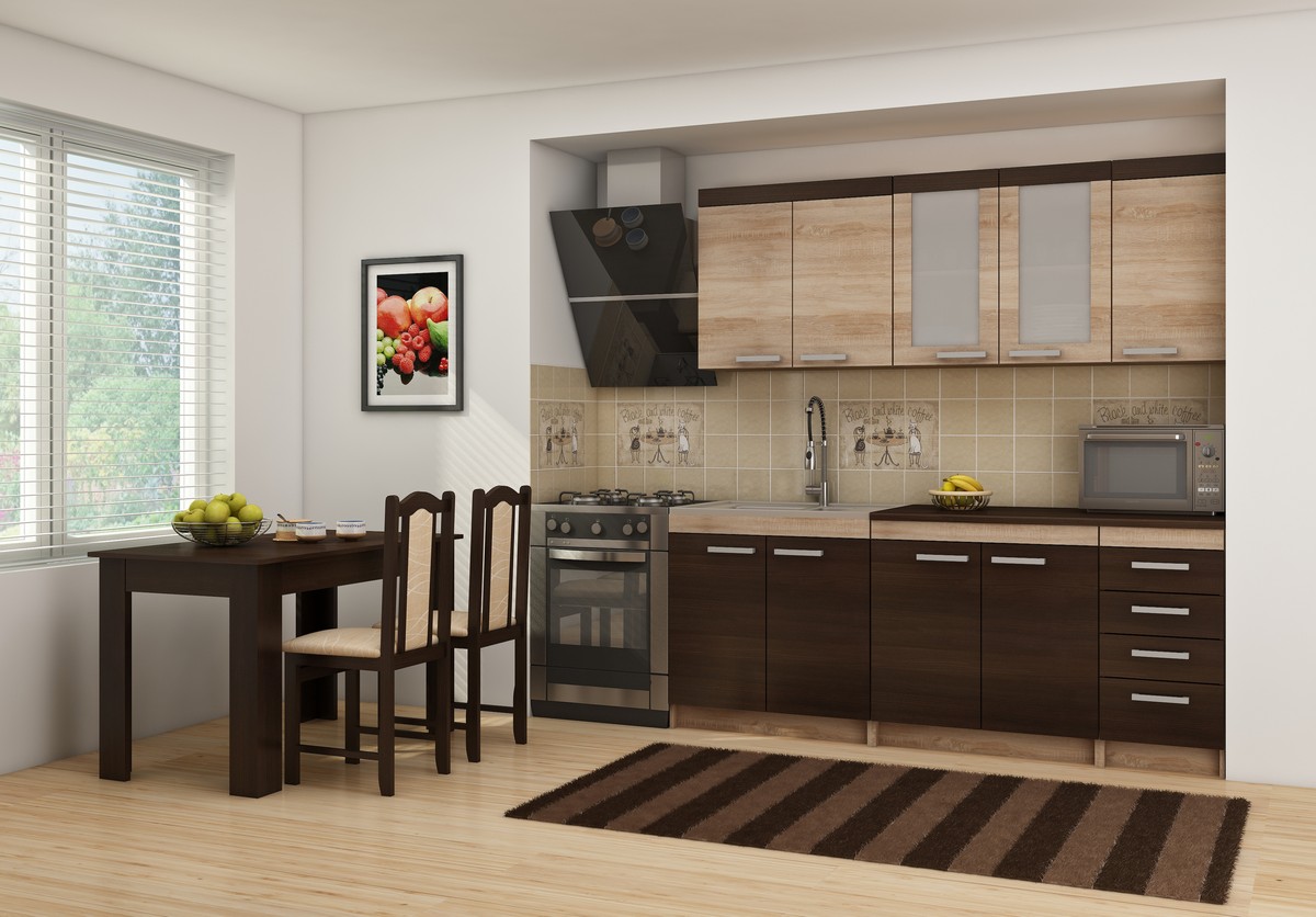 Elegantná kuchynská zostava vyrobená vo výborných farebných kombináciách: