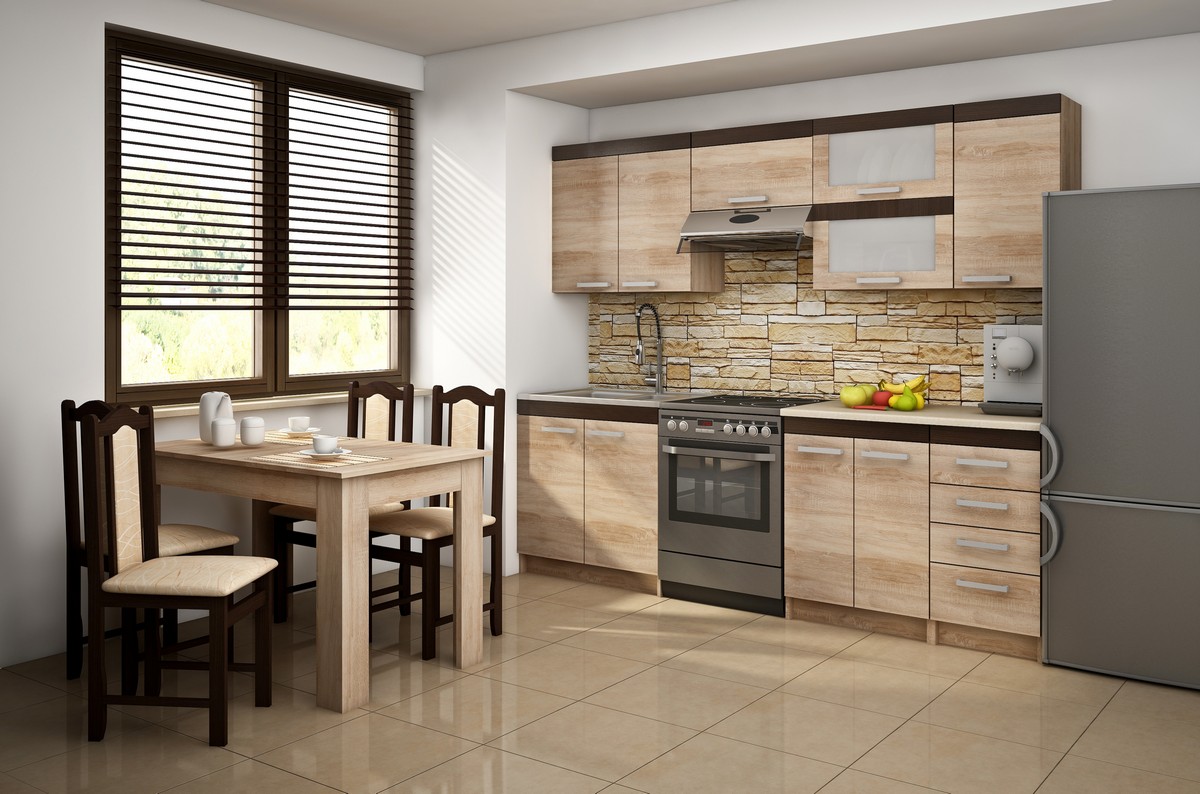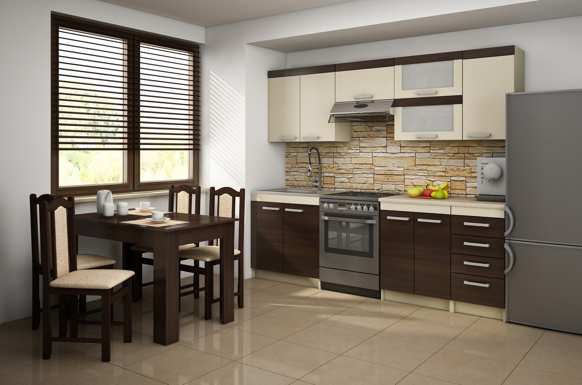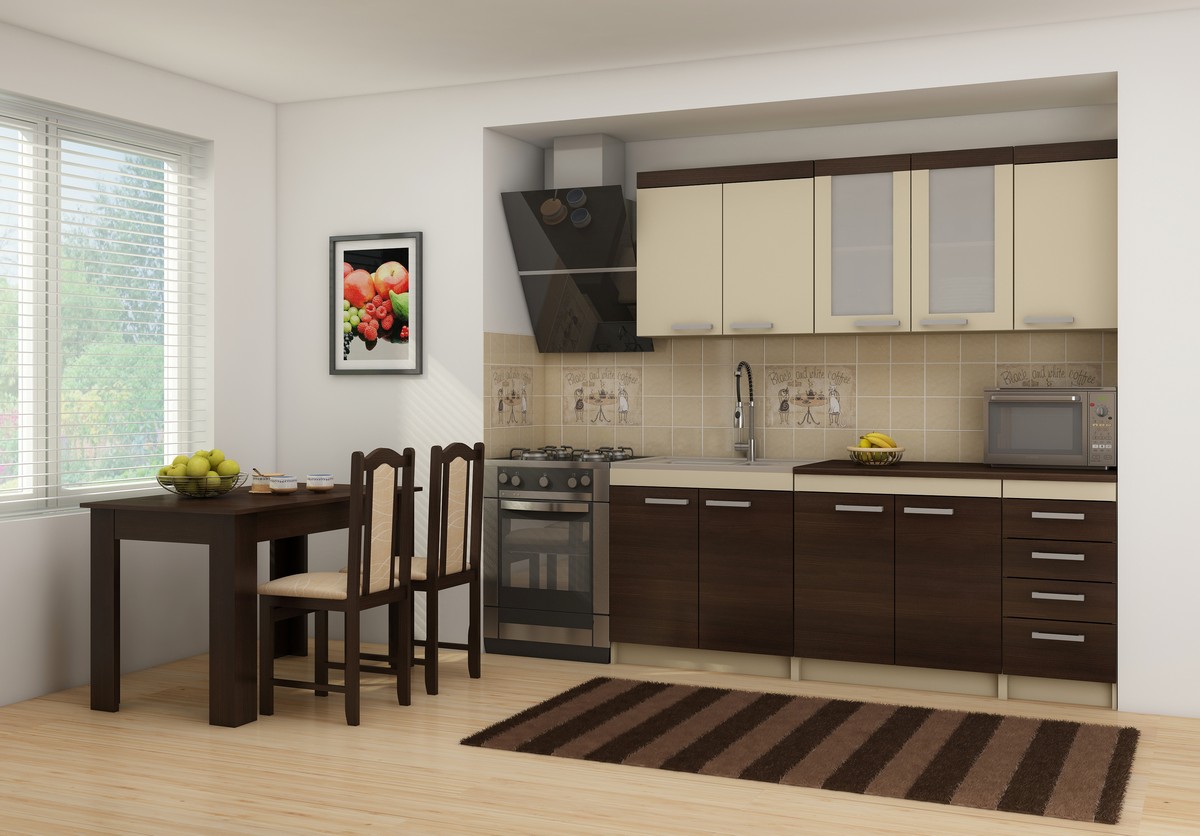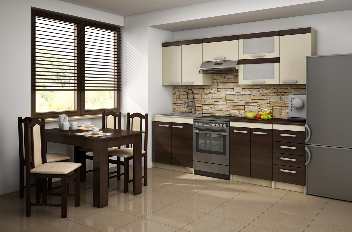 Elegantná kuchynská zostava vyrobená vo výborných farebných kombináciách: