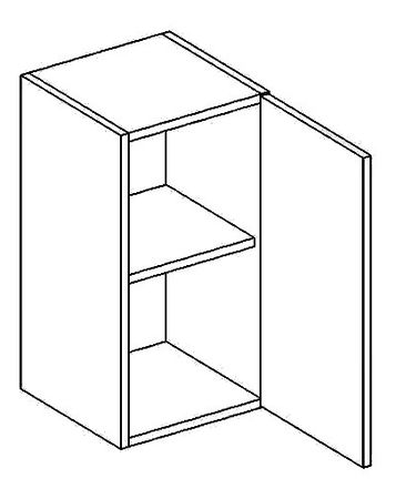 Horná kuchynská skrinka s dvierkami a úložným priestorom s poličkou. Vyobrazená skrinka je s pravým otváraním dvierok.