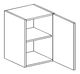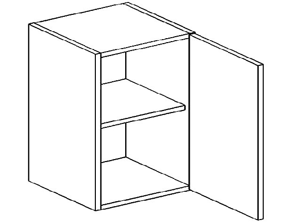 Horná kuchynská skrinka s dvierkami a úložným priestorom s poličkou. Vyobrazená skrinka je s pravým otváraním dvierok.