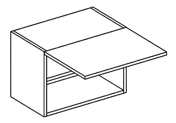 Horná kuchynská skrinka s dvierkami a úložným priestorom s poličkou. Vyobrazená skrinka je s pravým otváraním dvierok.