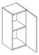 Horná kuchynská skrinka s dvierkami a úložným priestorom s poličkou. Vyobrazená skrinka je s pravým otváraním dvierok.