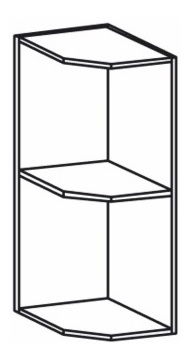 Horná rohová kuchynská skrinka, alebo regál s poličkami v pravom prevedení z kuchynskej zostavy Lora MDF klasik, ktorú si môžete vyskladať podľa vlastnej potreby. Materiál: korpus: DTD laminovaná.