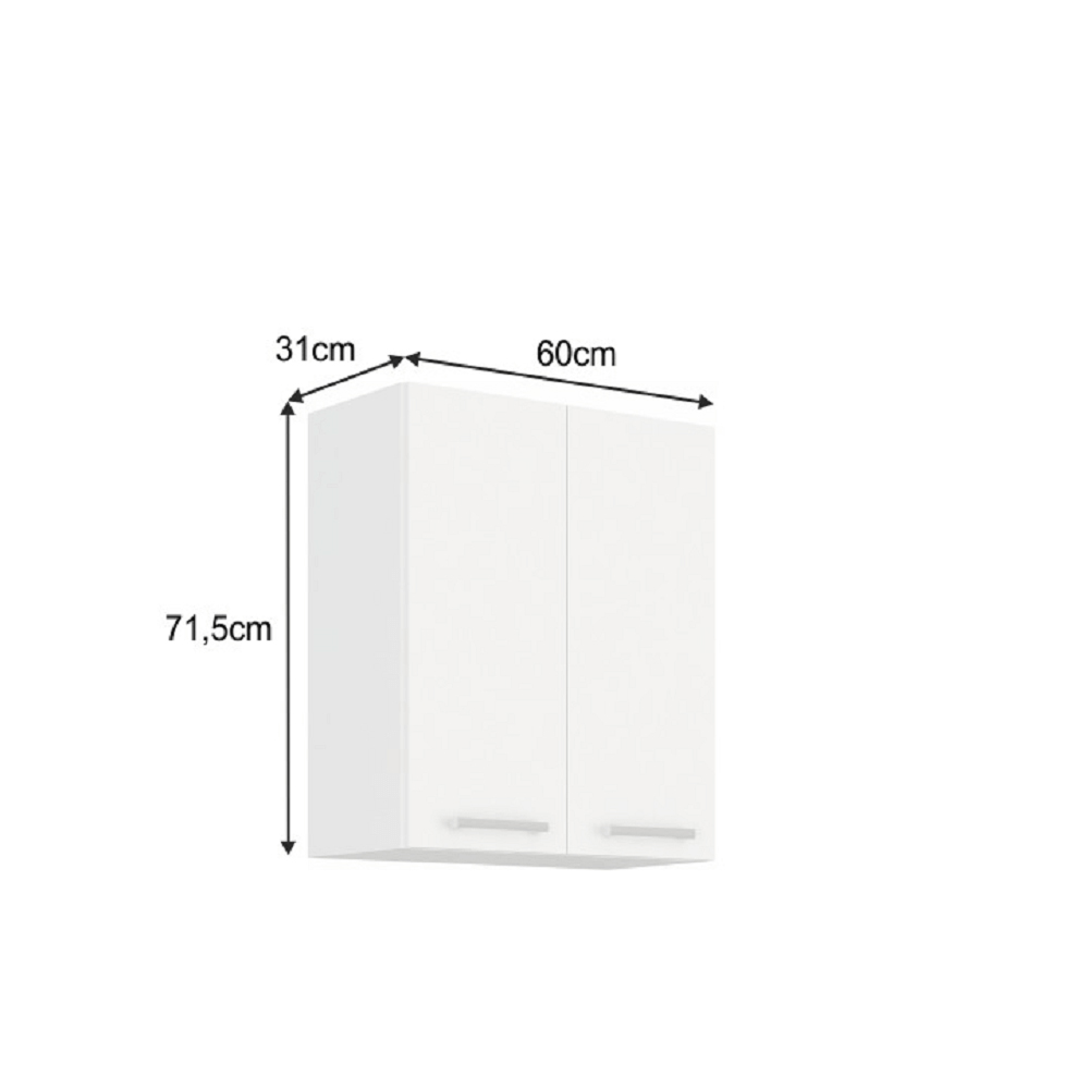 Horná skrinka Strolis 60 G-72 2F (biela) je kuchynská skriňa s dvomi dvierkami a jednou policou. Je vyrobená z DTD laminovaného materiálu a má bielu farbu. Rozmery skrinky sú 60x31x71,5 cm a je dodávaná v demonte. Spodné skrinky sú dodávané vrátane dolnej lišty a pracovná doska nie je súčasťou skriniek. Je možné si doobjednať pracovnú dosku v prevedení dub lancelot a univerzálny Ľ/P drez LAY ON. Kuchynskú linku si môžete zostaviť z jednotlivých skriniek podľa vlastnej potreby.