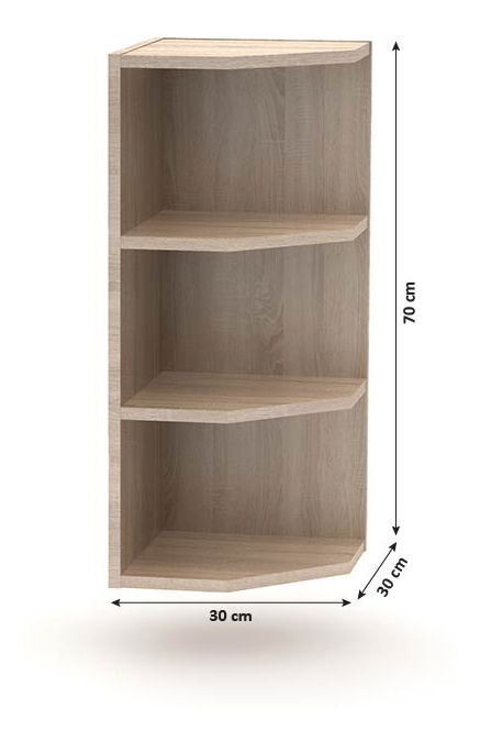 Horná kuchynská skrinka Noliana má výšku 70 cm, šírku 30 cm a hĺbku 30 cm. Vďaka svojmu dizajnu sa skrinka/regál hodí k modernej kuchyni a jej farebnému schéme. Skrinka poskytuje dostatok miesta na uloženie rôznych kuchynských potrieb a pomôcok, ktoré chcete mať vždy po ruke. Je vhodná aj pre menšie kuchyne, kde každý centimeter miesta sa počíta.