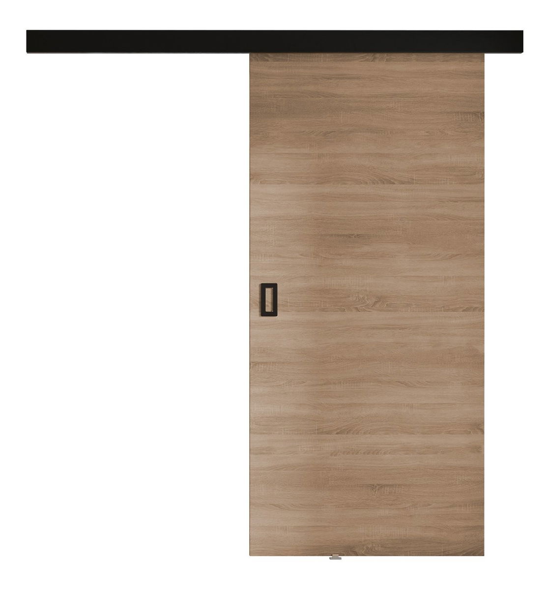 dvere vyrobené z najkvalitnejších materiálov, 16 mm hrubá laminovaná doska, čierny matný vrchný kryt, čierna plastová rukoväť (105 x 55 x 5 mm), možnosť montáže na ľavú alebo pravú stranu (univerzálne dvere), kryt vodidla je len spredu, boky nezakryte, posuvný systém s guľôčkovými ložiskami - kovový, krídlo dverí sa posúva po vedení namontovanom nad otvorom dverí pod maskou, kryt prečnieva od steny o 7,5 cm, v cene je samozatvárač, ktorý zabraňuje otrasom pri zatváraní, zadná strana dvierok je hladká a bez vložiek