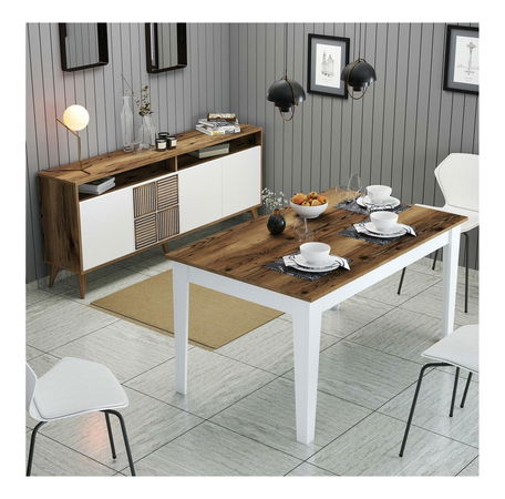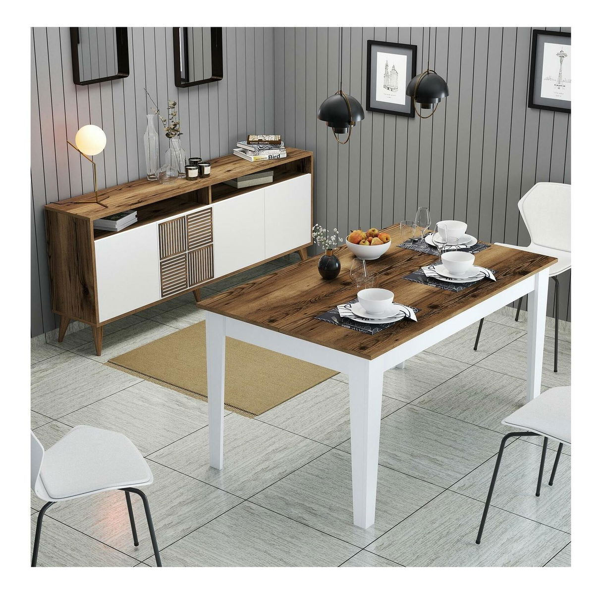 hrúbka: 18 mm, plastové nohy suntalam nohy komoda veľkosť: šírka: 180 cm, výška: 78,6 cm, hĺbka: 35 cm, výška nohy komody: 20 cm, veľkosť stola: šírka: 145 cm, výška: 75 cm, hĺbka: 88 cm, veľkosť úložného priestoru: 42,9 cm, výška: 9 cm