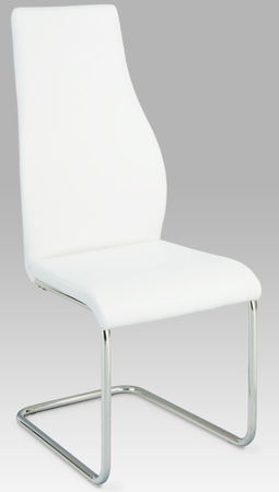 Jedálenská stolička so sedákom a vysokým operadlom s výrazným odtieňom horčicovej farby (alebo kari). Kovová konštrukcia v prevedení biela farba.
