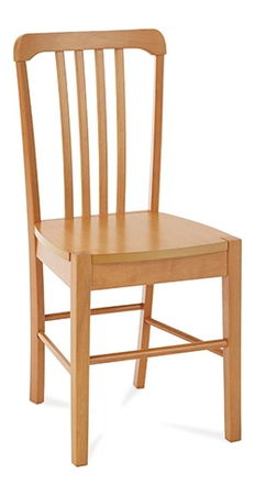 Príjemná drevená jedálenská stolička bez čalúnenia v prevedení jelša, sedák je z dreva typu MDF.