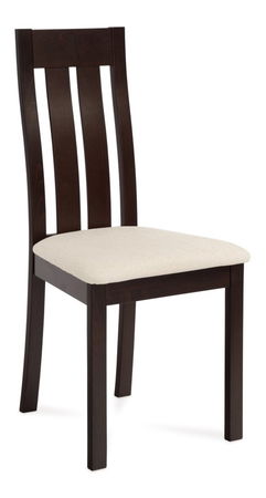 Opierka tejto jedálenskej stoličky je jemne prehnutá s cieľom dodať komfort sedenia, sedák je čalúnený v béžovom odtieni. Stolička je z masívneho dreva a v prevedení wenge.
