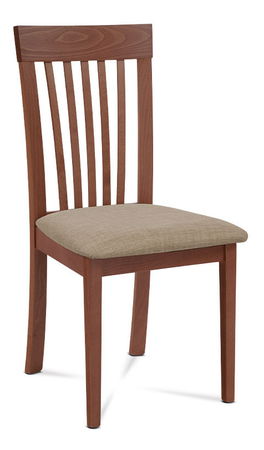Drevená jedálenská stolička v prevedení čerešňa s čalúneným sedákom v béžovom odtieni.