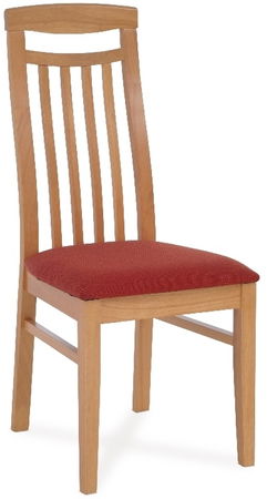 Jednoduchá jedálenská stolička vyrobená z masívneho dreva buku v prevedení buk s poťahom vo farbe červená.