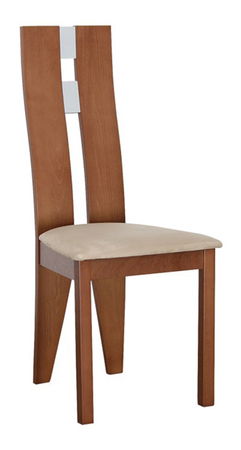 Luxus, ktorý si môžete dovoliť. Nádherná masívna drevená jedálenská stolička Bonali z bukového dreva vyrobená v prevedení čerešňa so sedákom v prevedení látka béžová. Opierka je v strede zdobená dvoma sivými obdĺžnikmi. Výška sedenia je 48 cm.