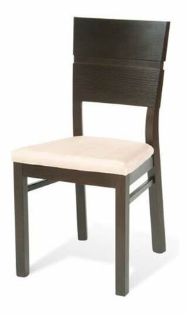 Jedálenská stolička moderného dizajnu so širším operadlom. Sedadlo je čalúnené látkou. Stolička je vhodná do moderne zariadených jedální alebo kuchýň.