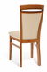 Elegantná jedálenská stolička s ozdobnými vyrezávanými nohami a zaobleným operadlom s výrezom. Opierka a sedadlo sú potiahnuté látkou.