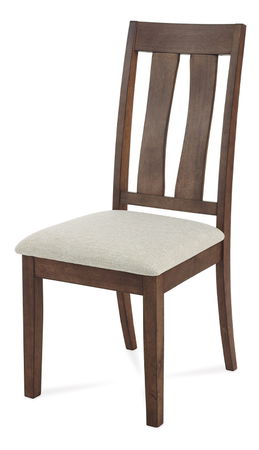 Drevená jedálenská stolička v prevedení antický orech s krémovým poťahom. Vhodná do starých kuchýň alebo jedální.