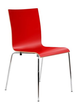 Jednoduchá jedálenská stolička s tvarovanou laminátovou sedacou časťou a chromovými nohami. Farbu laminátu si môžete vybrať z viacerých možností.