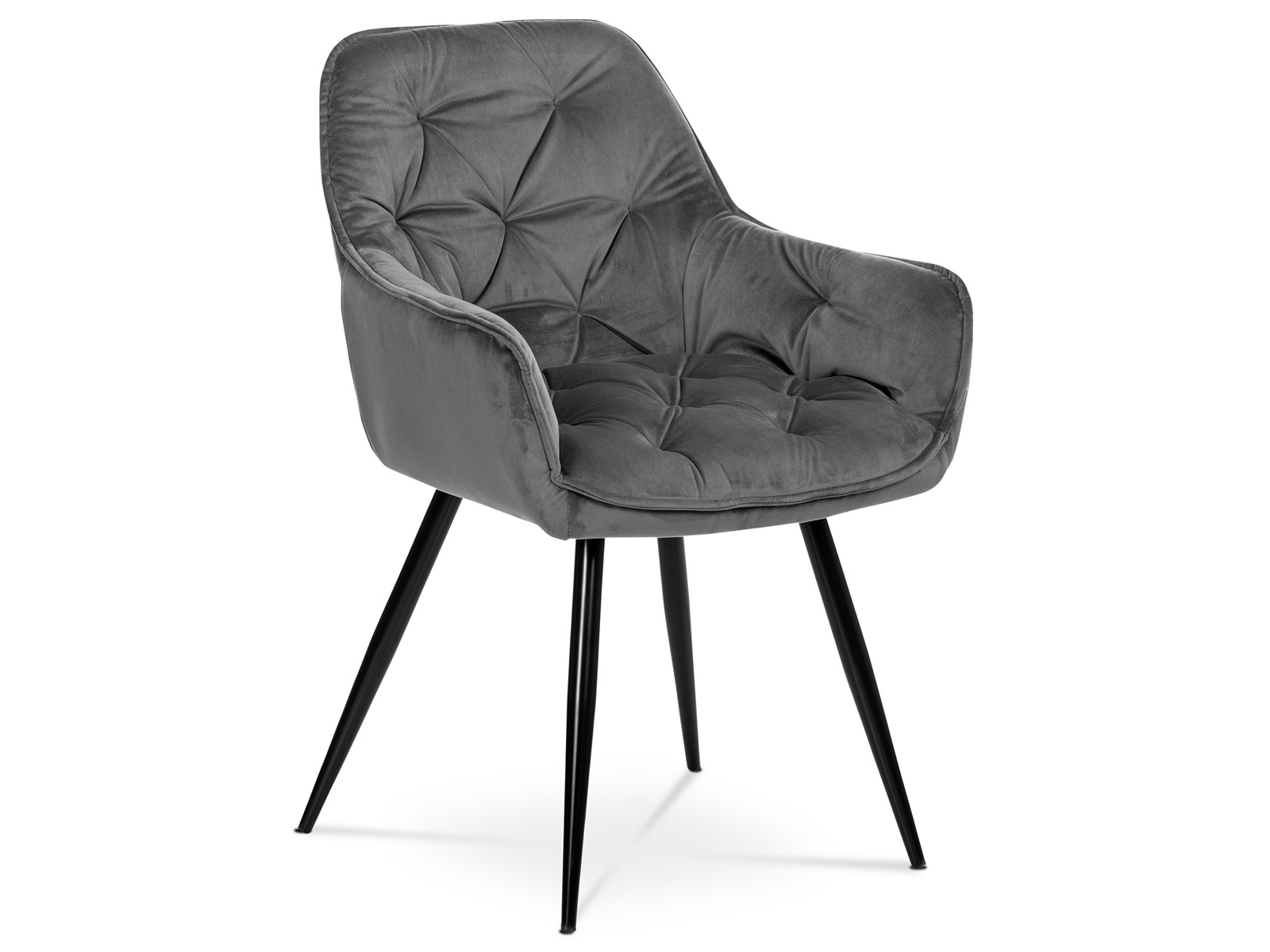 Vďaka svojmu dokonalému dizajnu je stolička Charli-GREY4 v industriálnom štýle nezameniteľná a zároveň veľmi pohodlná. Stolička má poťah z kvalitnej látky v štýlovom tmavosivom odtieni zamatu. Polstrovanie je vyrobené z PU peny. Dekoratívnym prvkom je výrazné masívne štvorcové prešitie sedacích častí vo farbe poťahu. Látku je možné jednoducho očistiť. Stabilitu stoličky zaisťujú štyri kónické kovové nohy s kvalitným práškovým nástrekom v čiernej matnej farbe. Ukončené sú čiernymi plastovými klzákmi, zabraňujúci poškodeniu tvrdých povrchov podláh. Tieto prevedenia produkujú z tohto modelu stoličky skvelú voľbu pre zariadenie obývacích či jedálenských, ale aj zasadacích miestností.