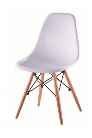 Jedálenská stolička výrazného retro dizajnu, ktorá má tvarovaný plastový sedák, nohy z masívneho dreva a podpornú oceľovú konštrukciu. Bude spestrením vašich jedální. Farebné prevedenie stoličky je biela. Výška sedu je 45 cm.
