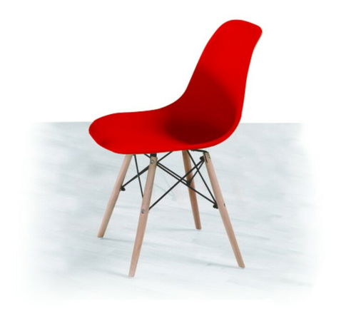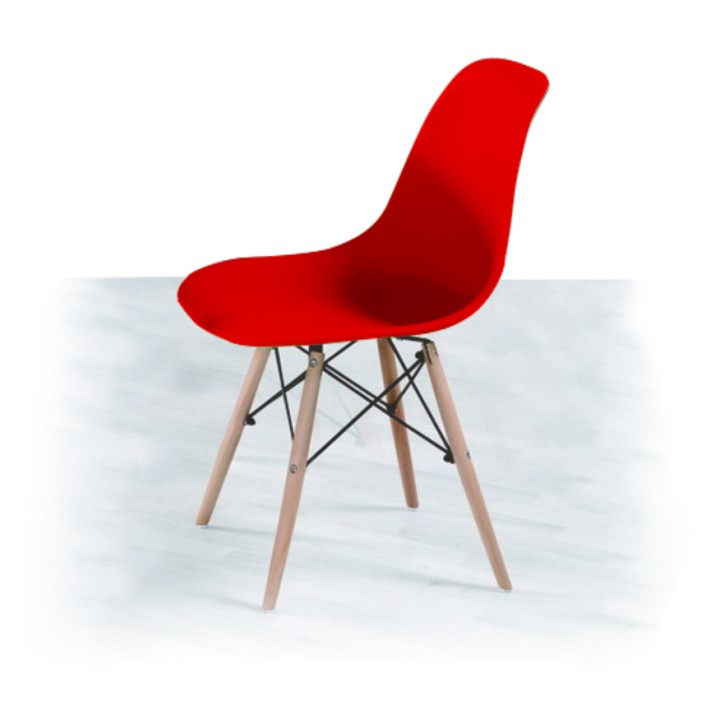 Jedálenská stolička výrazného retro dizajnu, ktorá má tvarovaný plastový sedák, nohy z masívneho dreva a podpornú oceľovú konštrukciu. Bude spestrením vašich jedální. Farebné prevedenie stoličky je červená. Výška sedu je 45 cm.