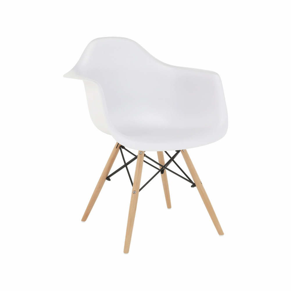 Stolička Damen má ojedinelý dizajn a skrášli tak vaše obývačky, študentské izby, prípadne pracovne. Sedacia časť je z plastu bieleho farebného prevedenia. Stolička má štyri drevené nohy v prevedení buk.
