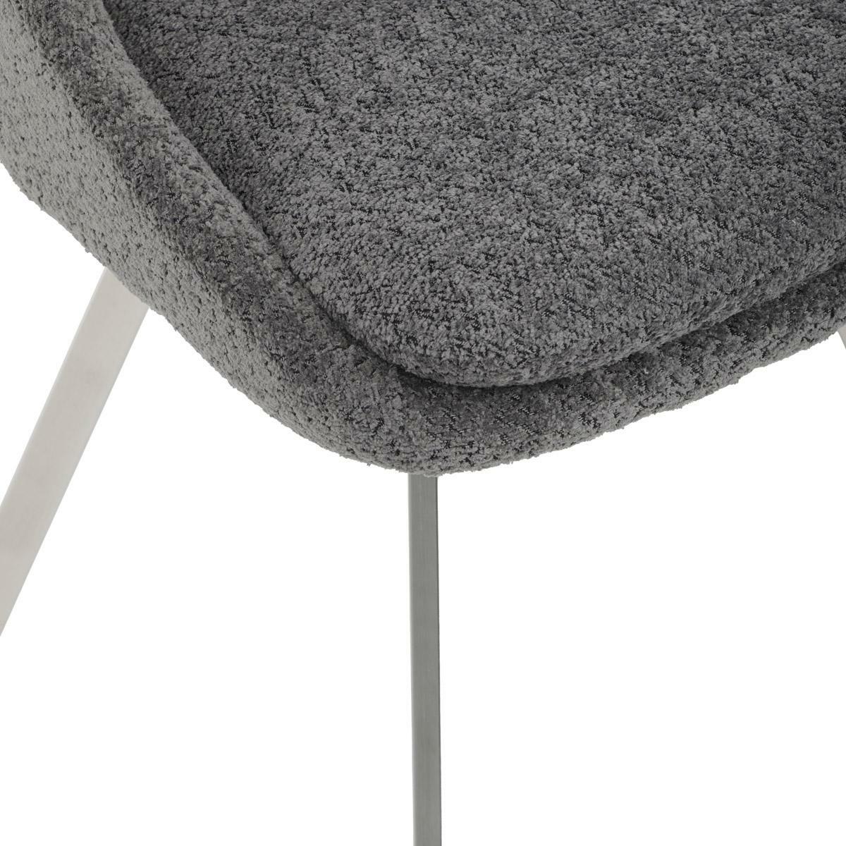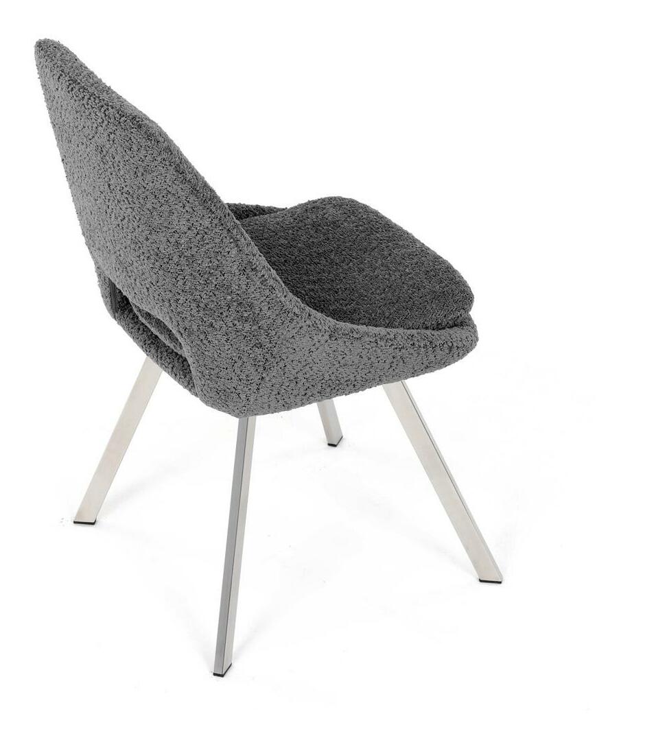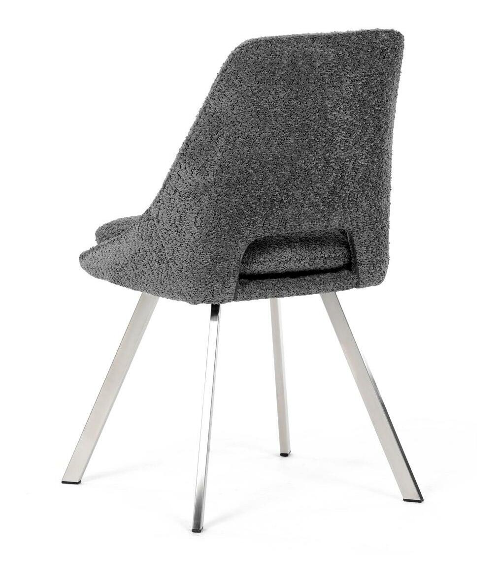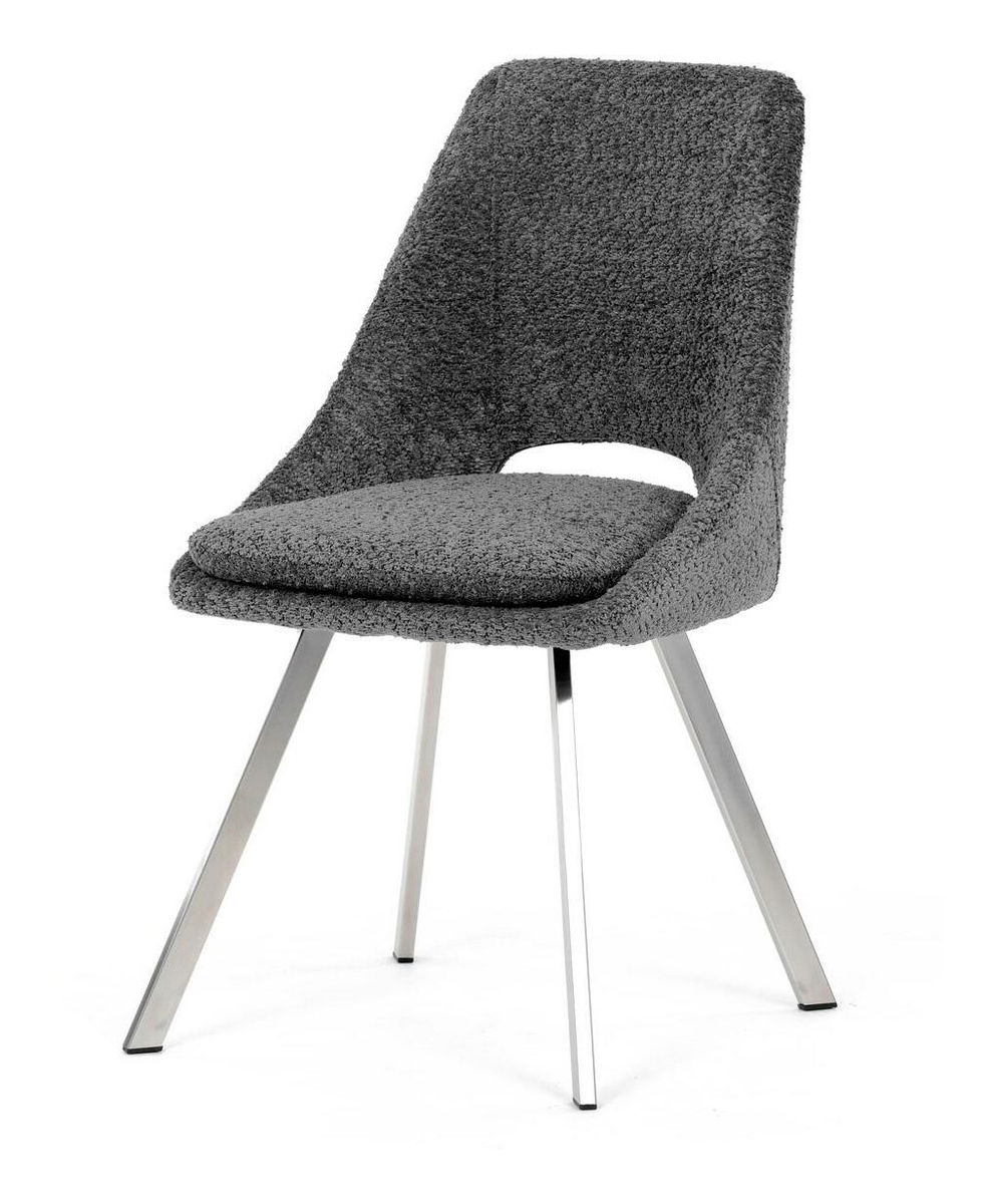 Moderná jedálenská stolička v elegantnom šedom odtieni kombinuje štýl a pohodlie. Poťah z mäkkej látky Bouclé ponúka príjemný a odolný povrch, ktorý sa skvele hodí do moderných interiérov. Štyri nohy z brúseného nerezu zaisťujú stabilitu a moderný vzhľad, zatiaľ čo výplň z PU peny poskytuje optimálny komfort pri sedení. Táto stolička je ideálna pre jedálne alebo moderné pracovné priestory. Vďaka svojmu dizajnu a kvalitným materiálom zaisťuje dlhú životnosť aj pri každodennom používaní. Výrazný kúsok, ktorý vynikne v každom interiéri.