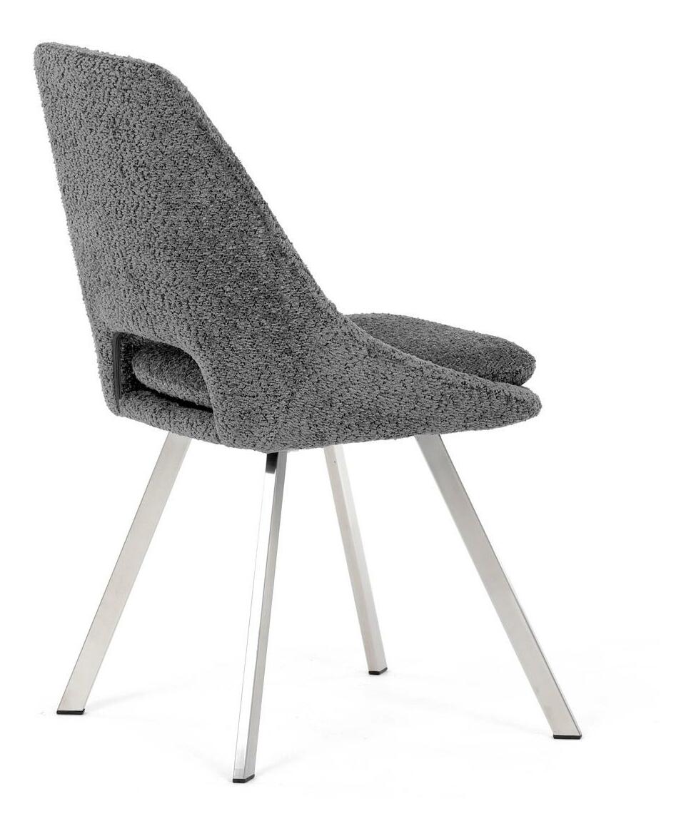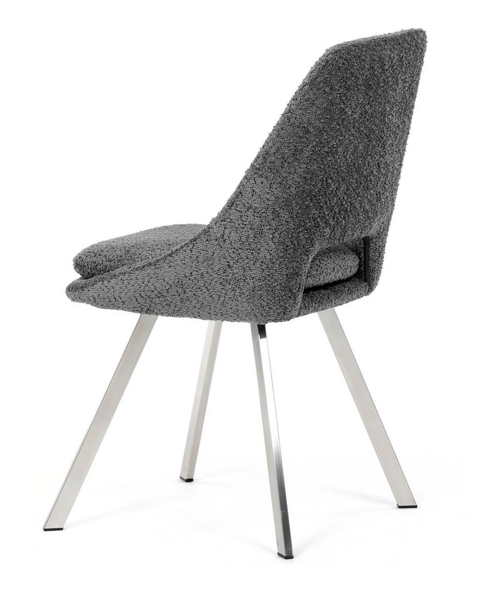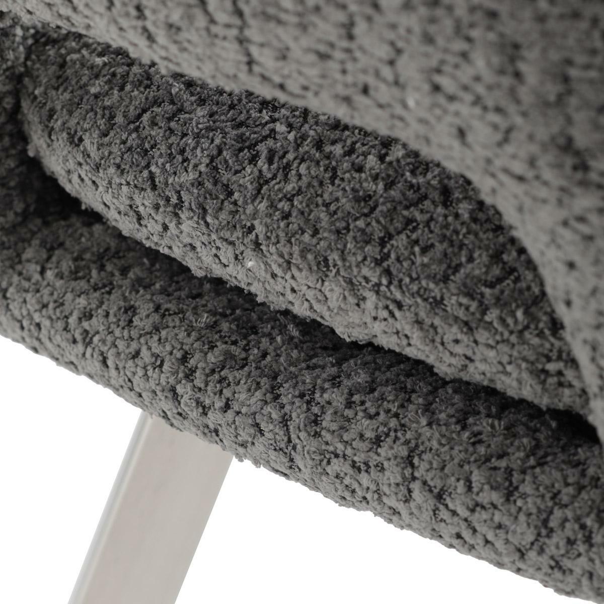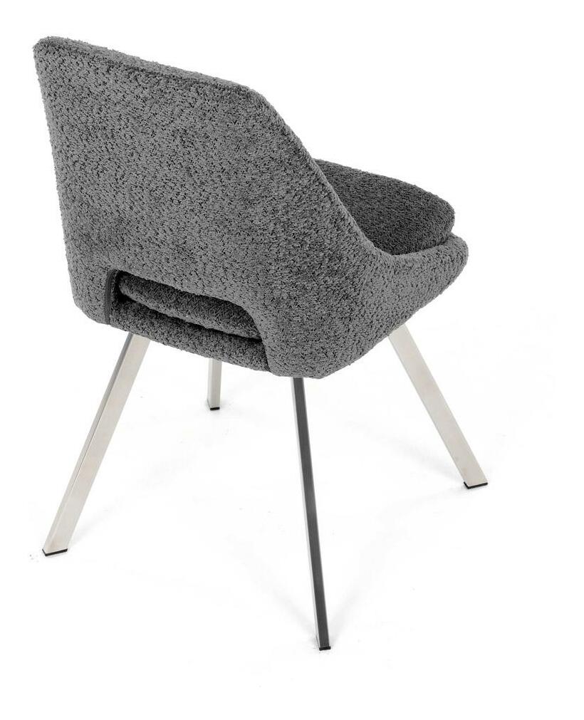 Moderná jedálenská stolička v elegantnom šedom odtieni kombinuje štýl a pohodlie. Poťah z mäkkej látky Bouclé ponúka príjemný a odolný povrch, ktorý sa skvele hodí do moderných interiérov. Štyri nohy z brúseného nerezu zaisťujú stabilitu a moderný vzhľad, zatiaľ čo výplň z PU peny poskytuje optimálny komfort pri sedení. Táto stolička je ideálna pre jedálne alebo moderné pracovné priestory. Vďaka svojmu dizajnu a kvalitným materiálom zaisťuje dlhú životnosť aj pri každodennom používaní. Výrazný kúsok, ktorý vynikne v každom interiéri.
