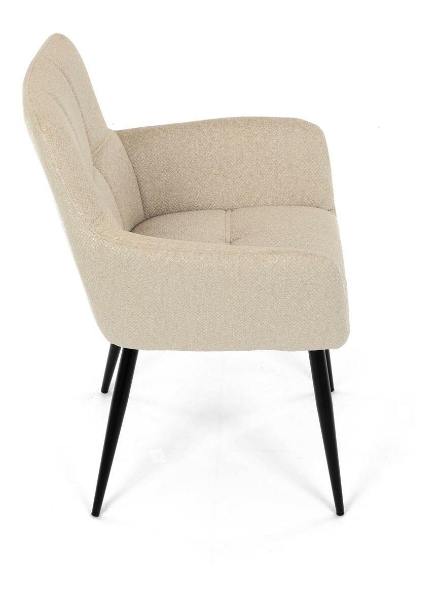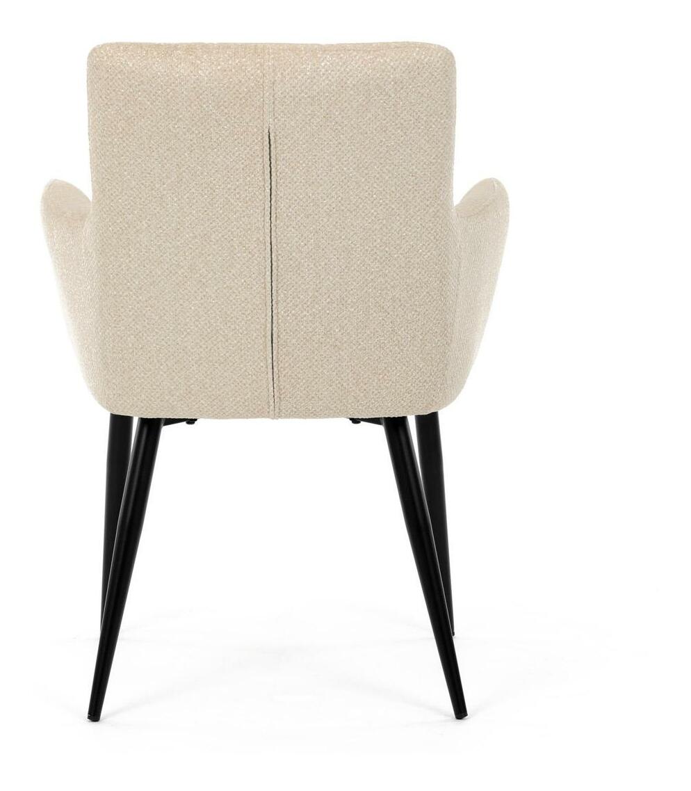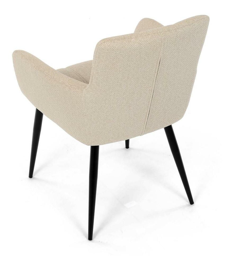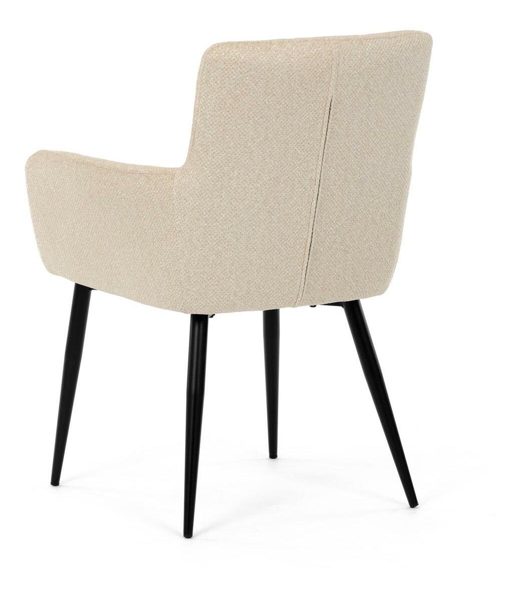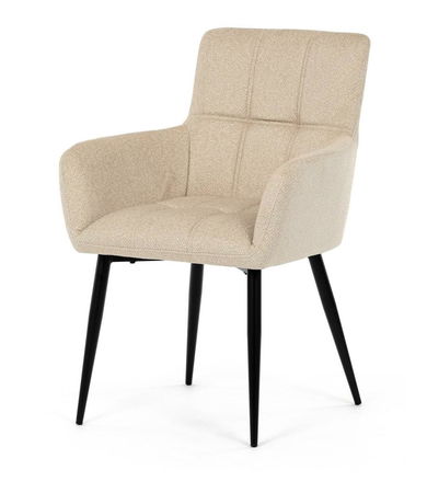 Elegantná krémová jedálenská stolička skvele doplní moderné aj klasické interiéry. Táto štýlová stolička ponúka vysoký komfort vďaka čalúneniu z kvalitnej látky a mäkkému sedáku z PU peny. Čierne kovové nohy zaisťujú stabilitu a dodávajú stoličke jemný industriálny nádych. Komfortné podrúčky a ergonomické prevedenie oceníte pri každom posedení. Stolička sa hodí nielen do domácej jedálne, ale aj do reštauračných priestorov, kde vytvorí útulnú atmosféru.