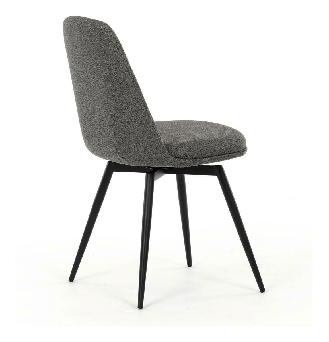 Elegantná jedálenská stolička v modernom šedom prevedení prináša pohodlí a štýl do každého interiéru. Mäkký čalúnený sedák s hladkou látkou a výplňou z PU peny ponúka komfort aj pre dlhšie sedenie. Stolička je navyše vybavená praktickým otočným mechanizmom 360°, čo zaisťuje flexibilitu a usnadňuje pohyb. Stabilitu a pevnosť poskytujú čierne kovové nohy, ktoré zároveň pridávajú stoličke moderný vzhľad. Táto stolička skvele doplní váš jedálenský priestor a vďaka univerzálnej šedej farbe sa ľahko zladí s rôznymi štýlmi interiéru.