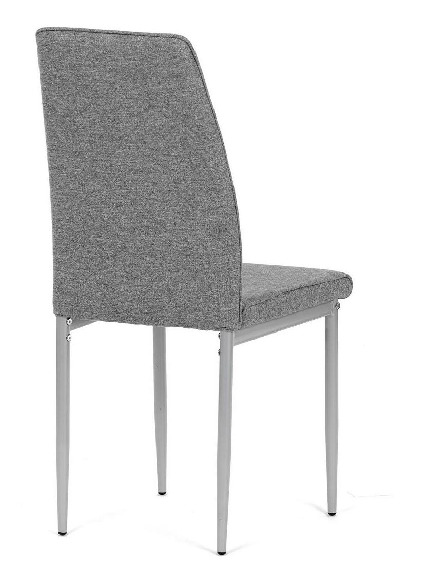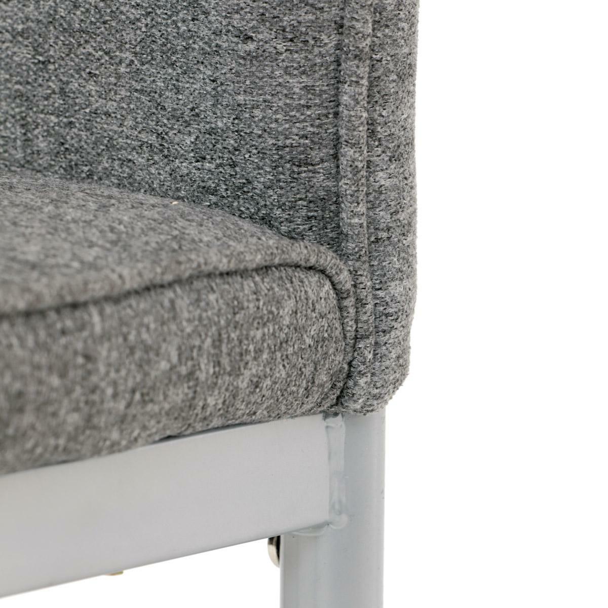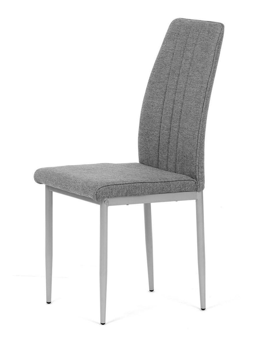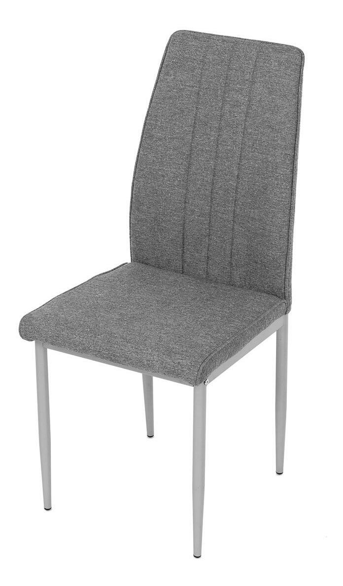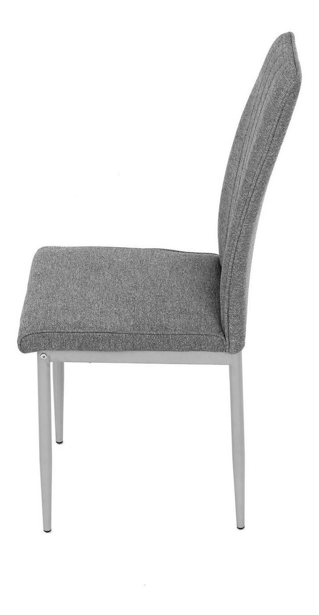 Jedálenská stolička v industriálnom štýle zaujme svojim minimalistickým dizajnom a praktickými vlastnosťami. Poťah je vyrobený z odolnej hladkej látky v šedej farbe, ktorý ľahko zapadne do rôznych interiérov. Pohodlie zaisťuje mäkká PU pena vo výplni, zatiaľ čo kovové nohy v šedej farbe dodávajú stabilitu a pevnosť. Elegantné prešívanie dodáva stoličke elegantný vzhľad. Tento model je skvelou voľbou pre moderné aj klasické interiéry.