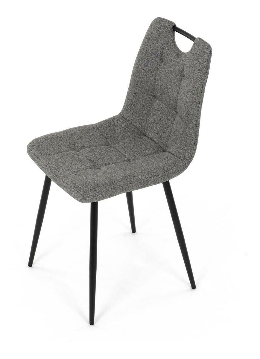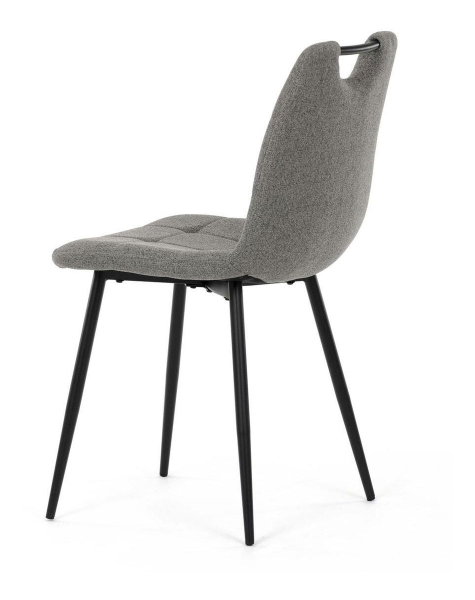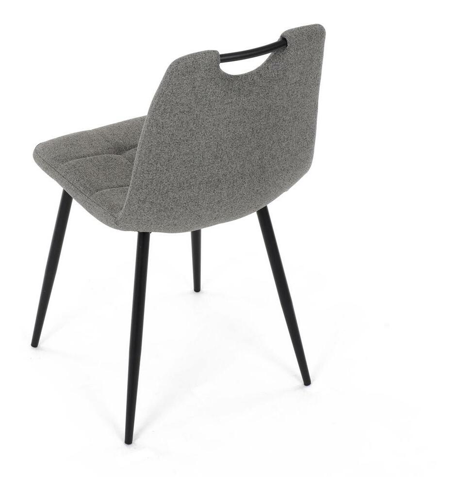 Jedálenská stolička v modernom šedom prevedení ponúka elegantný dizajn a vysoký komfort. Pohodlný čalúnený sedák z mäkkej PU peny a kvalitná hladká látka zaisťujú maximálne pohodlie pri dlhom sedení. Štíhle, čierne kovové nohy dodávajú stoličke stabilitu a súčasne pôsobia vzdušne. Táto štýlová stolička je ideálnou voľbou do moderných interiérov, kde skvele doplní jedálenský stôl.