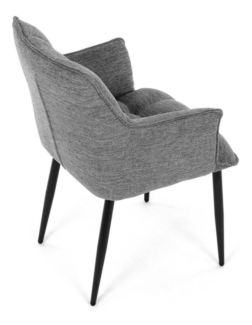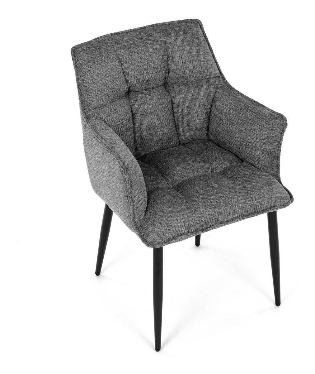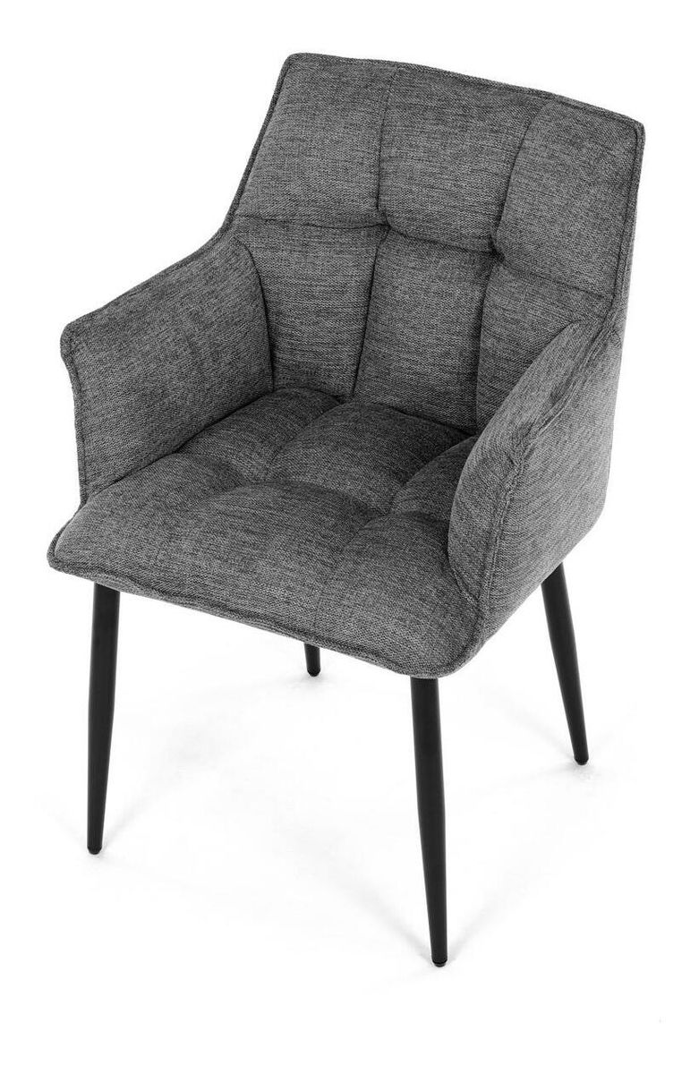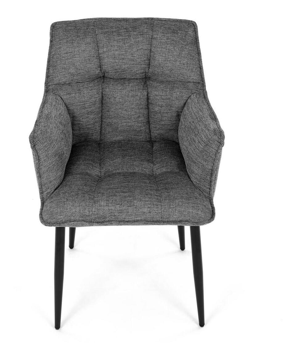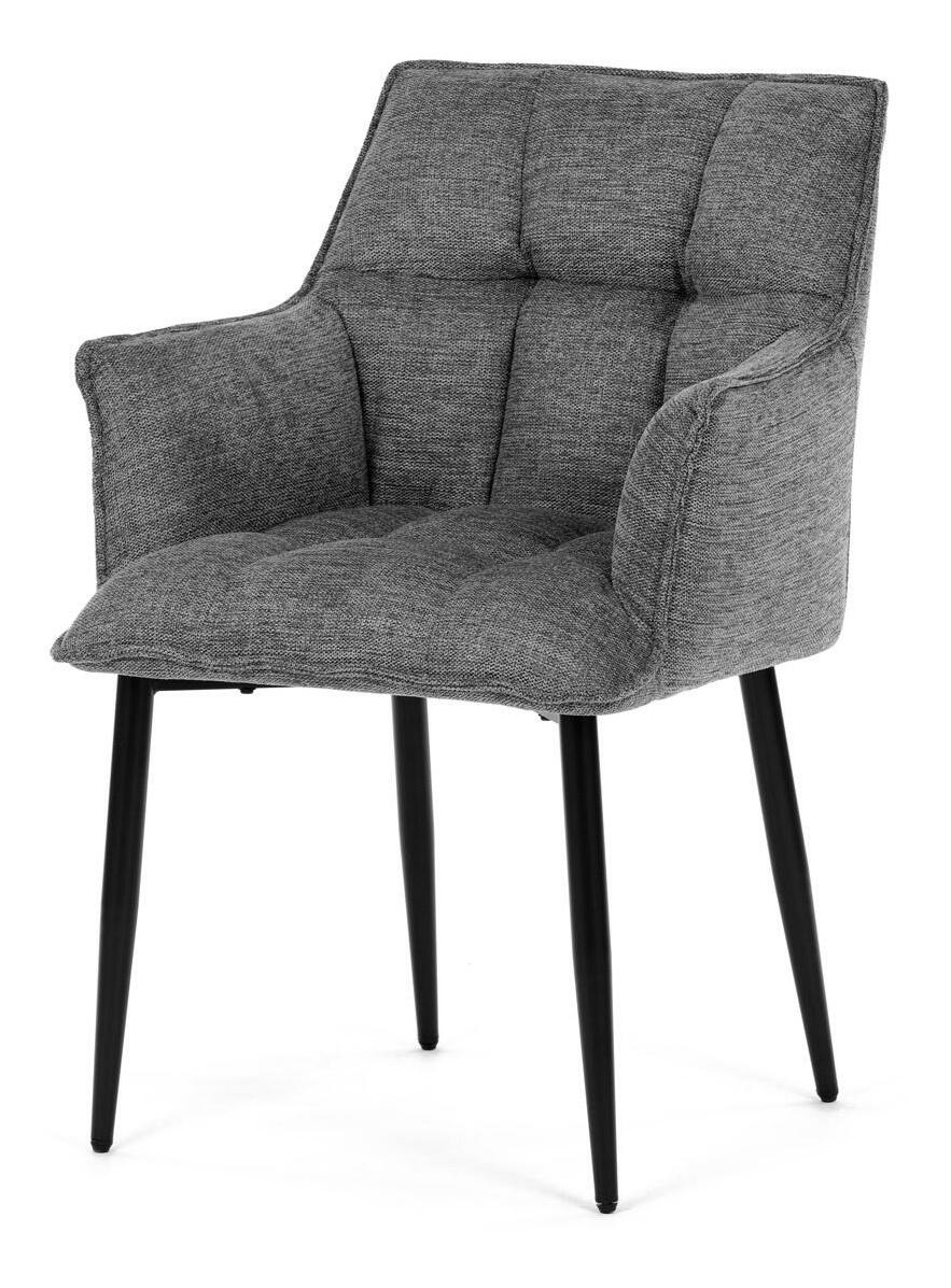 Štýlová jedálenská stolička kombinuje moderný dizajn s vysokou funkčnosťou. Elegantné šedé čalúnenie z vodoodpudivej látky zaisťuje ľahkú údržbu a odolnosť proti nečistotám, čo oceníte v každodennej prevádzke. Pohodlie pri sedení zaručuje mäkká PU pena a integrované podrúčky, ktoré podporujú správnu ergonómiu. Stabilitu zaisťujú štyri kovové nohy v čiernom prevedení, ktoré podčiarkujú moderný vzhľad. Táto stolička skvele doplní akýkoľvek jedálenský priestor a prinesie doň sofistikovaný štýl a pohodlie.