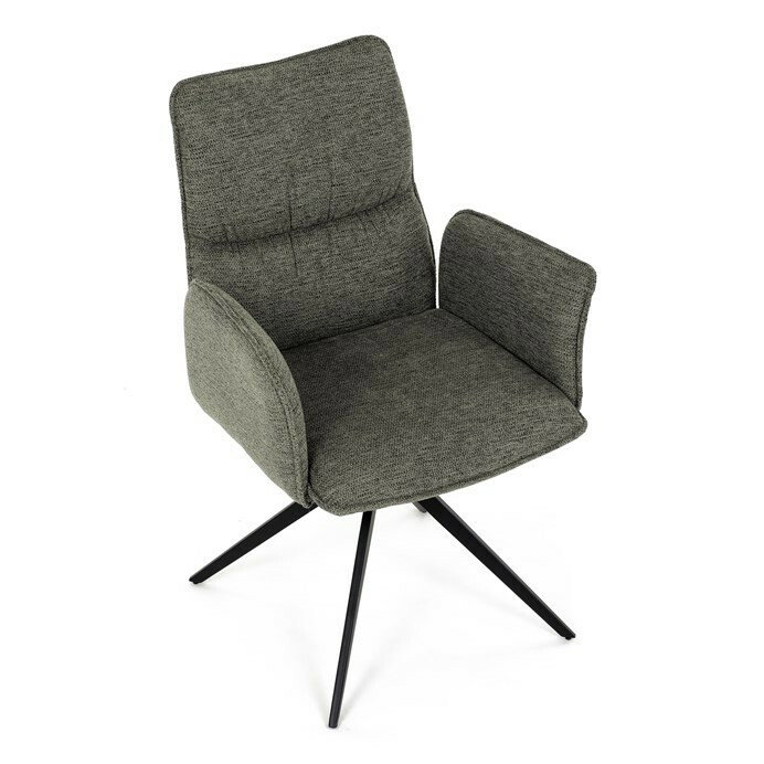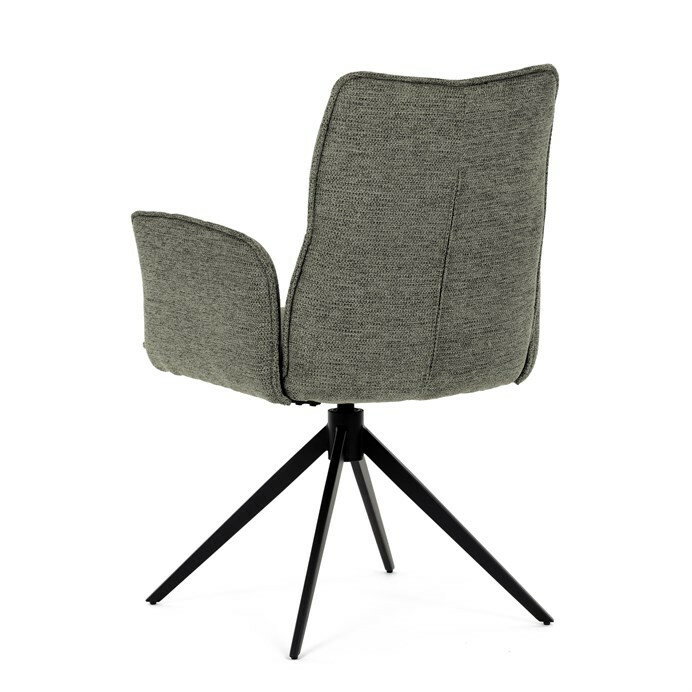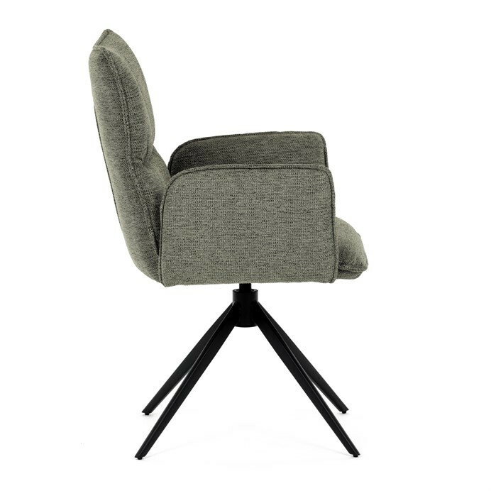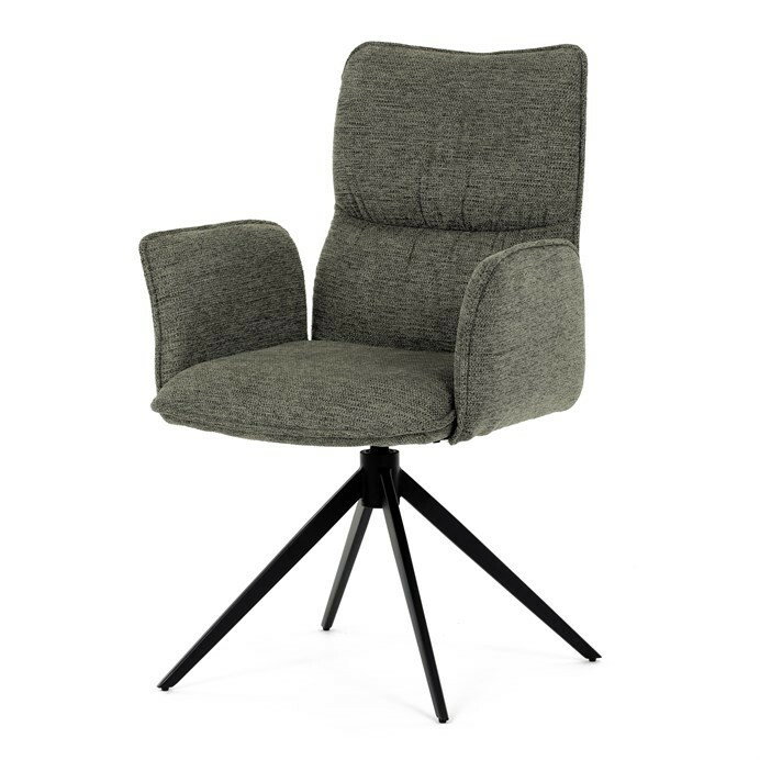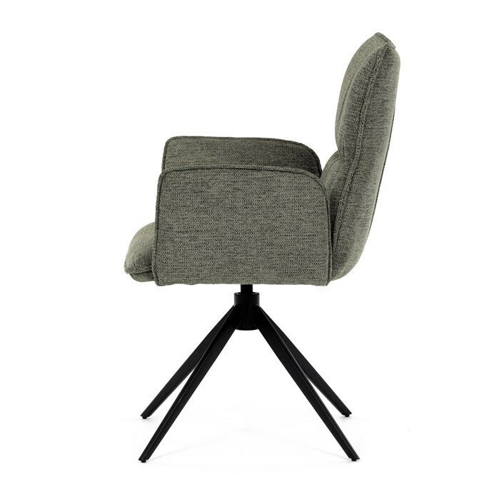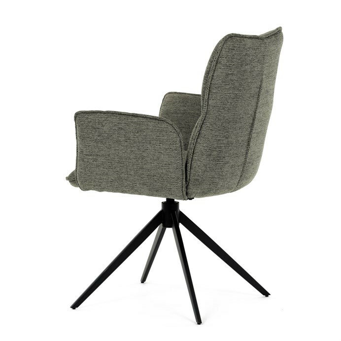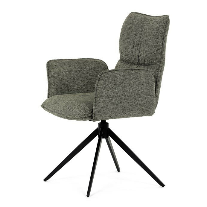 Jedálenská stolička DCH-D1328 GRN2 vyniká 360° vratným mechanizmom, ktorý zabezpečuje jednoduchú otočnosť a flexibilitu pri sedení. Čalúnenie z kvalitnej zelenej látky ponúka príjemný a odolný povrch, ktorý je zároveň priedušný a komfortný pre dlhšie posedenie. Konštrukcia stoličky je podporená pevným kovovým podstavcom v čiernej matnej úprave, ktorá garantuje stabilitu a dlhú životnosť. Integrované čalúnené podrúčky prispievajú k ergonómii a pohodliu, umožňujú uvoľnenú pozíciu rúk počas stolovania. Sedák aj operadlo sú anatomicky tvarované a vyplnené mäkkou penou, ktorá zvyšuje komfort a podporuje správne držanie tela. Vďaka pevnej kovovej konštrukcii nôh je stolička vhodná na každodenné použitie v domácnostiach aj komerčných priestoroch. Celkový dizajn kombinuje modernú estetiku s praktickými vlastnosťami, pričom rozmery a nosnosť zodpovedajú štandardným požiadavkám jedálenských stoličiek.