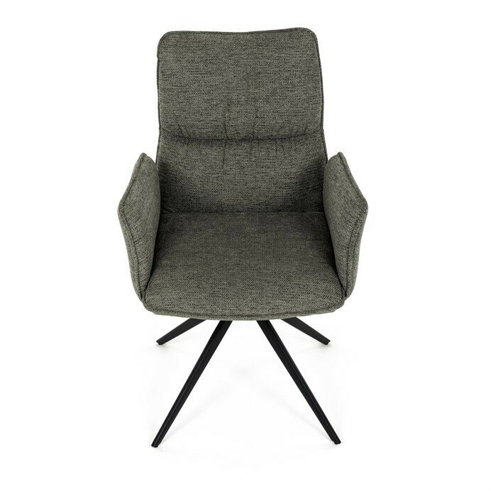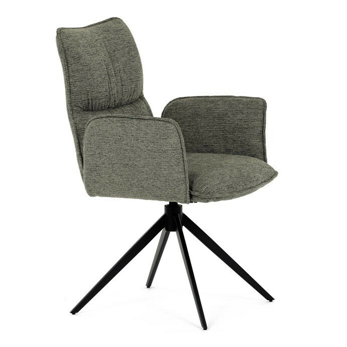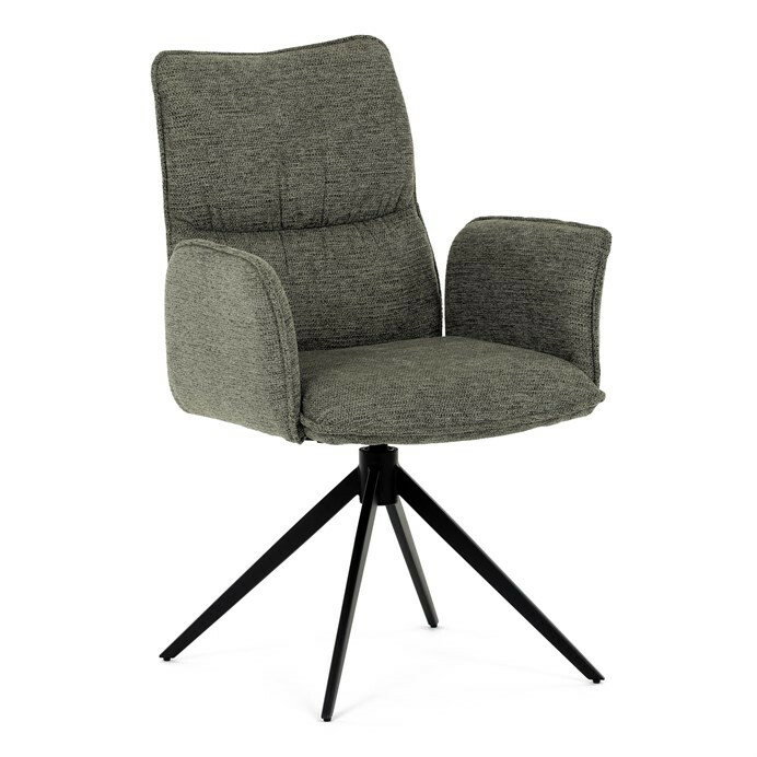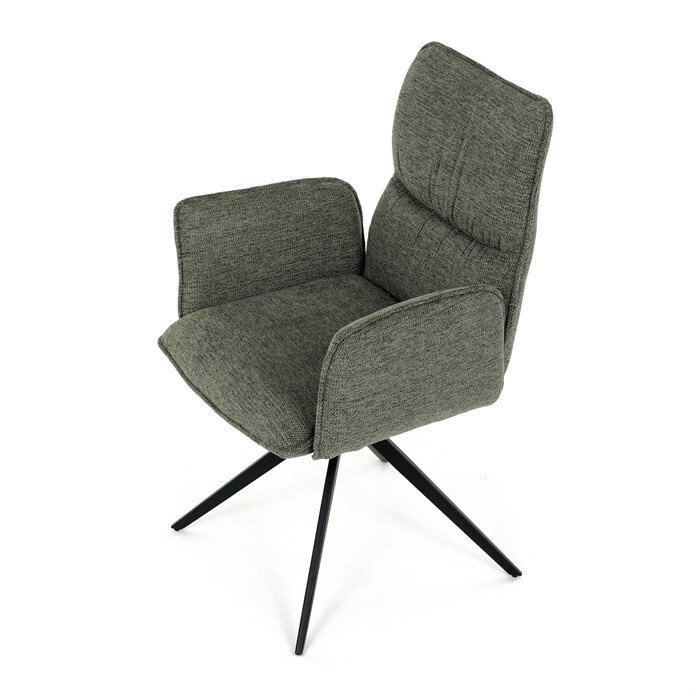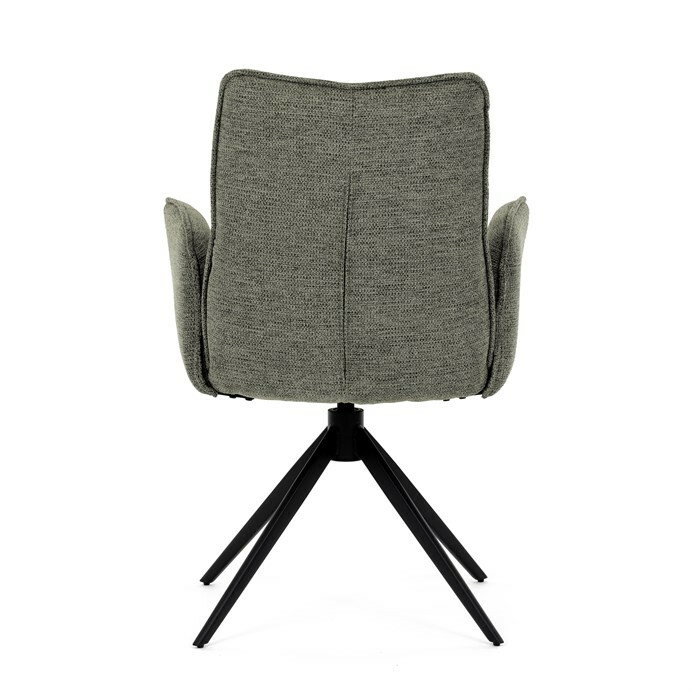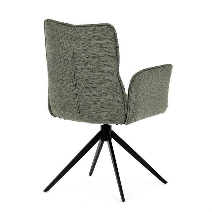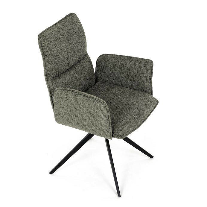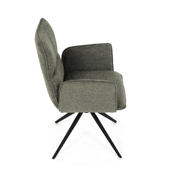 Jedálenská stolička DCH-D1328 GRN2 vyniká 360° vratným mechanizmom, ktorý zabezpečuje jednoduchú otočnosť a flexibilitu pri sedení. Čalúnenie z kvalitnej zelenej látky ponúka príjemný a odolný povrch, ktorý je zároveň priedušný a komfortný pre dlhšie posedenie. Konštrukcia stoličky je podporená pevným kovovým podstavcom v čiernej matnej úprave, ktorá garantuje stabilitu a dlhú životnosť. Integrované čalúnené podrúčky prispievajú k ergonómii a pohodliu, umožňujú uvoľnenú pozíciu rúk počas stolovania. Sedák aj operadlo sú anatomicky tvarované a vyplnené mäkkou penou, ktorá zvyšuje komfort a podporuje správne držanie tela. Vďaka pevnej kovovej konštrukcii nôh je stolička vhodná na každodenné použitie v domácnostiach aj komerčných priestoroch. Celkový dizajn kombinuje modernú estetiku s praktickými vlastnosťami, pričom rozmery a nosnosť zodpovedajú štandardným požiadavkám jedálenských stoličiek.