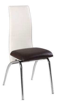 Luxusná jedálenská stolička jednoduchého dizajnu dokonale skrášli Váš jedálenský priestor. Chromovú konštrukciu dopĺňa čalúnený sedák s vysokým operadlom vyrobený z kvalitnej ekokože. Sedák je tmavohnedej farby a operadlo béžové. Výška sedu je 46 cm.