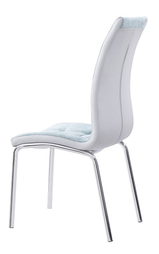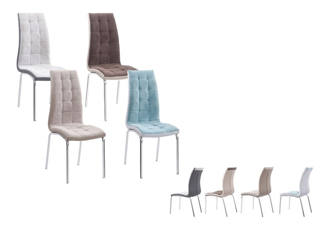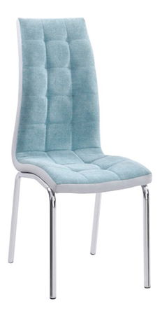 Originálna jedálenská stolička je prešitá látkou a ekokožou. Nohy sú chrómované.