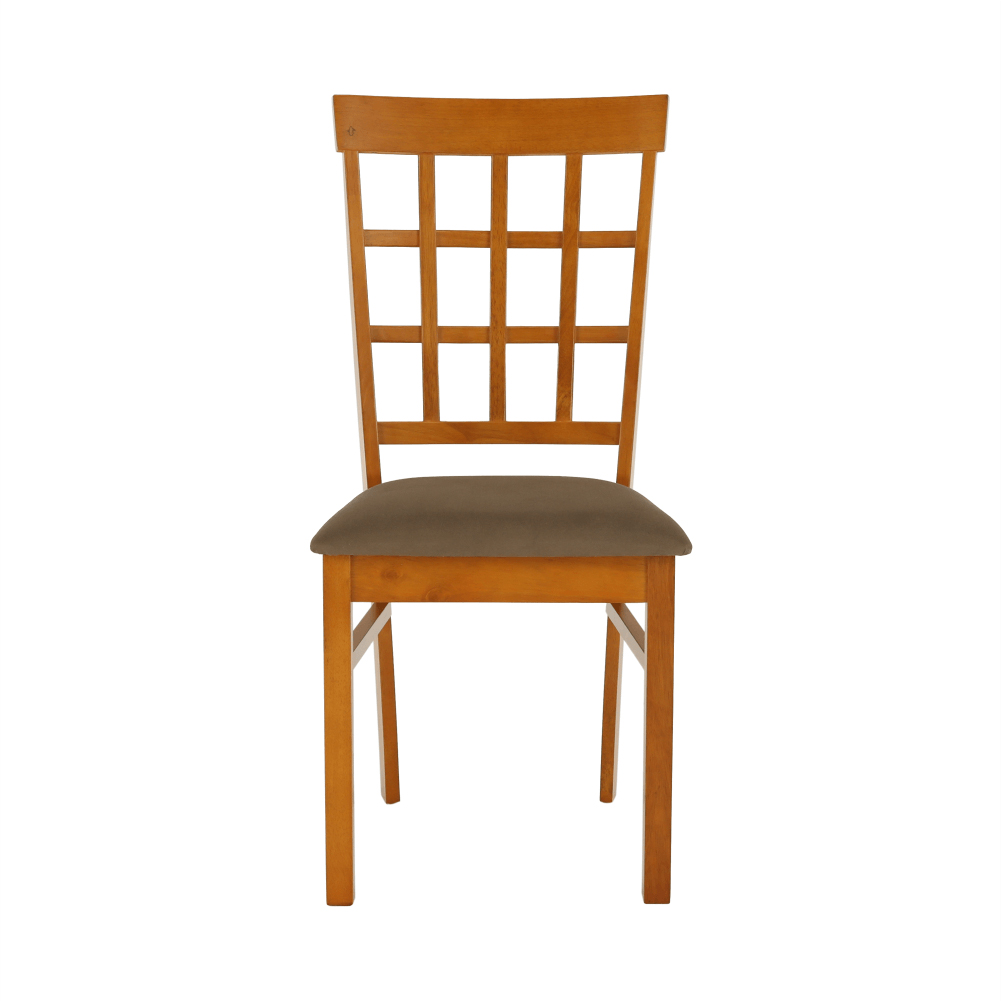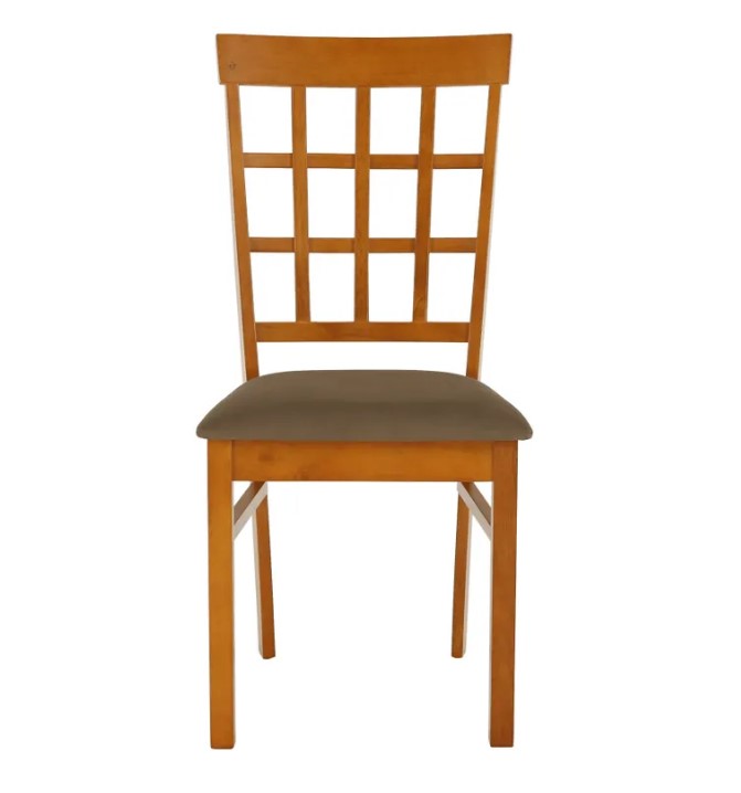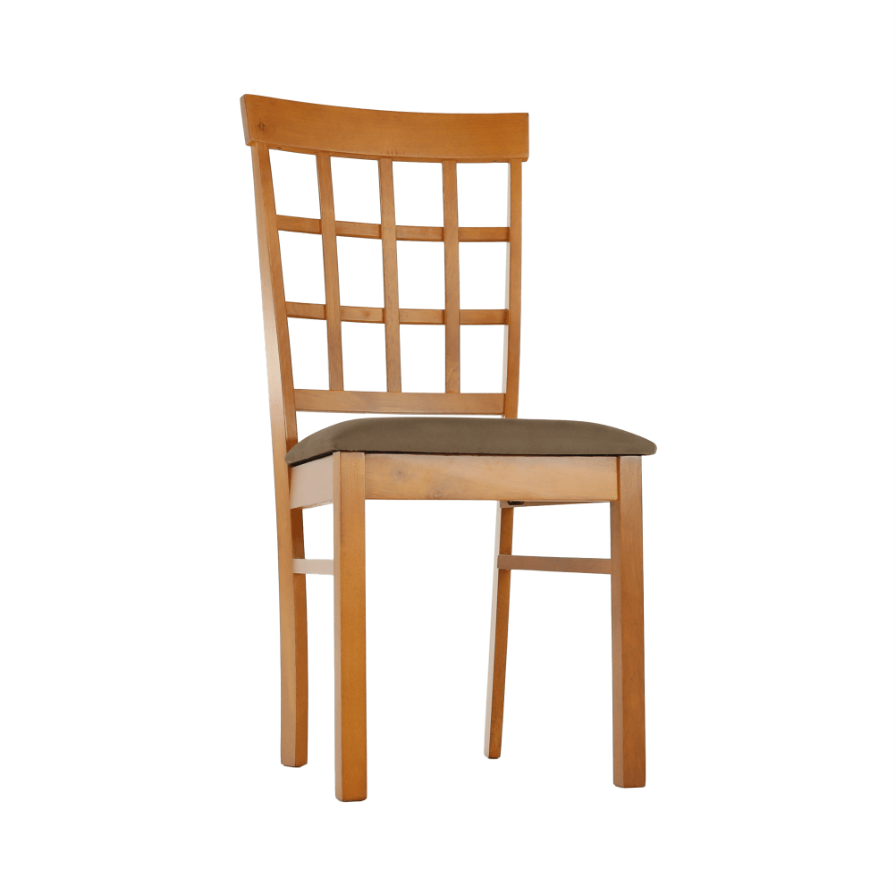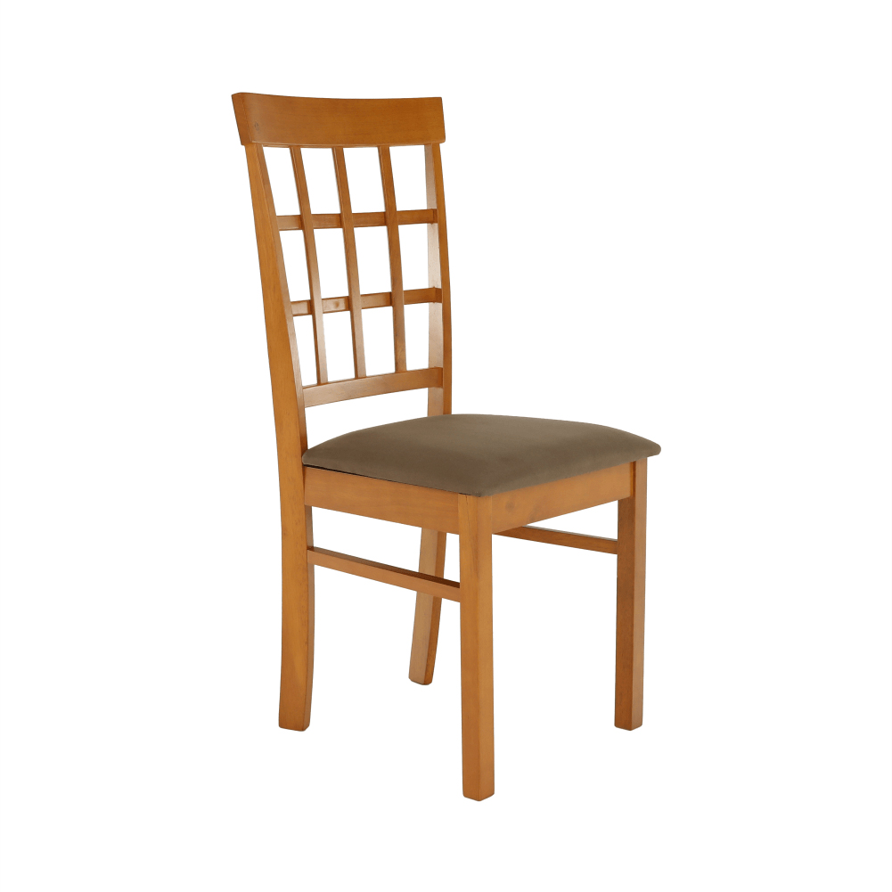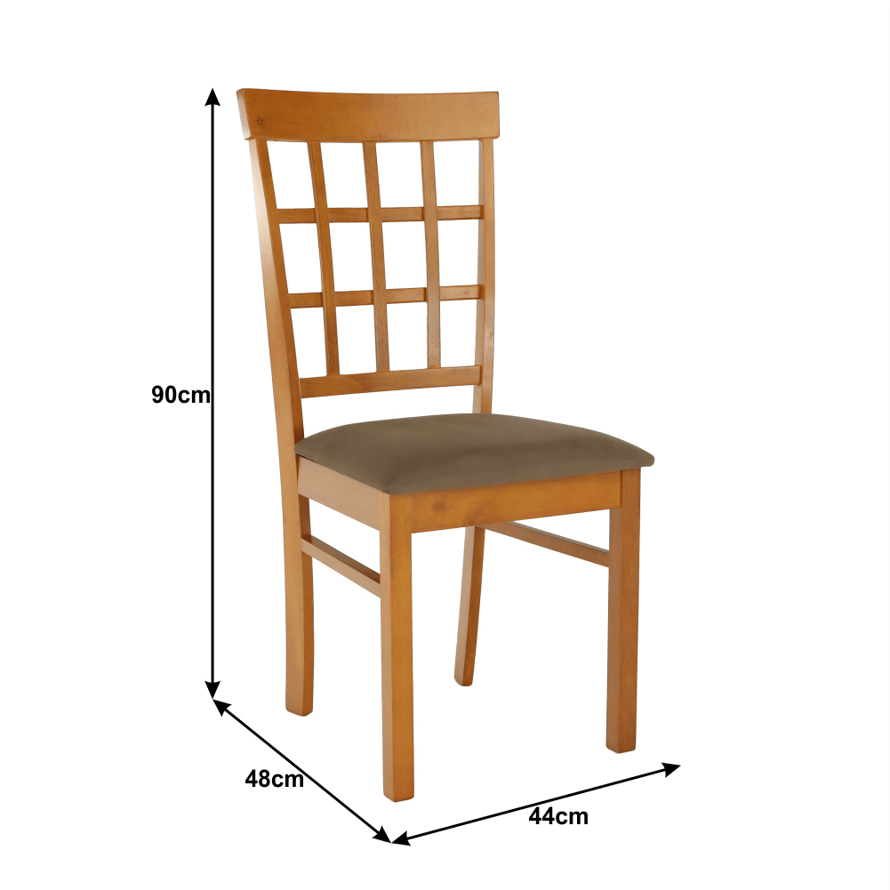Jedalenská stolička Gris vyniká opierkou v mriežkovanom štýle. Stolička je v prevedení čerešňa a sedák je v slabo hnedej látke.