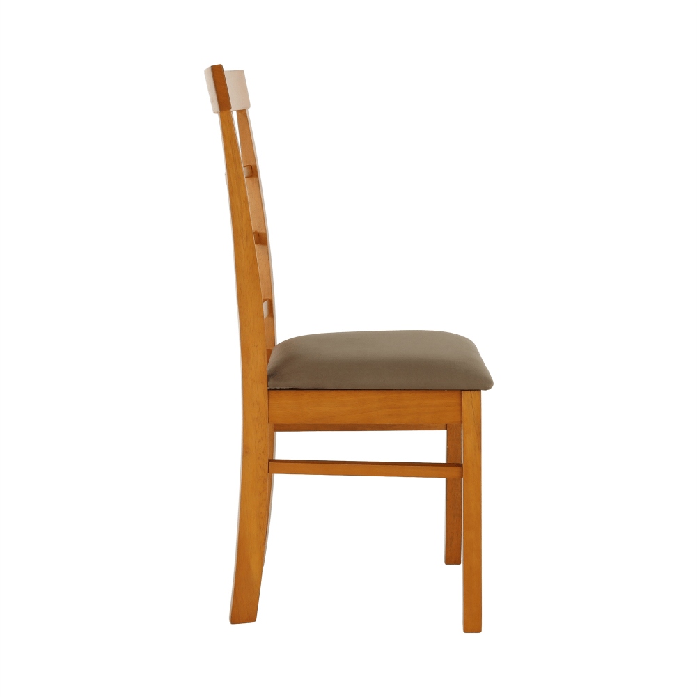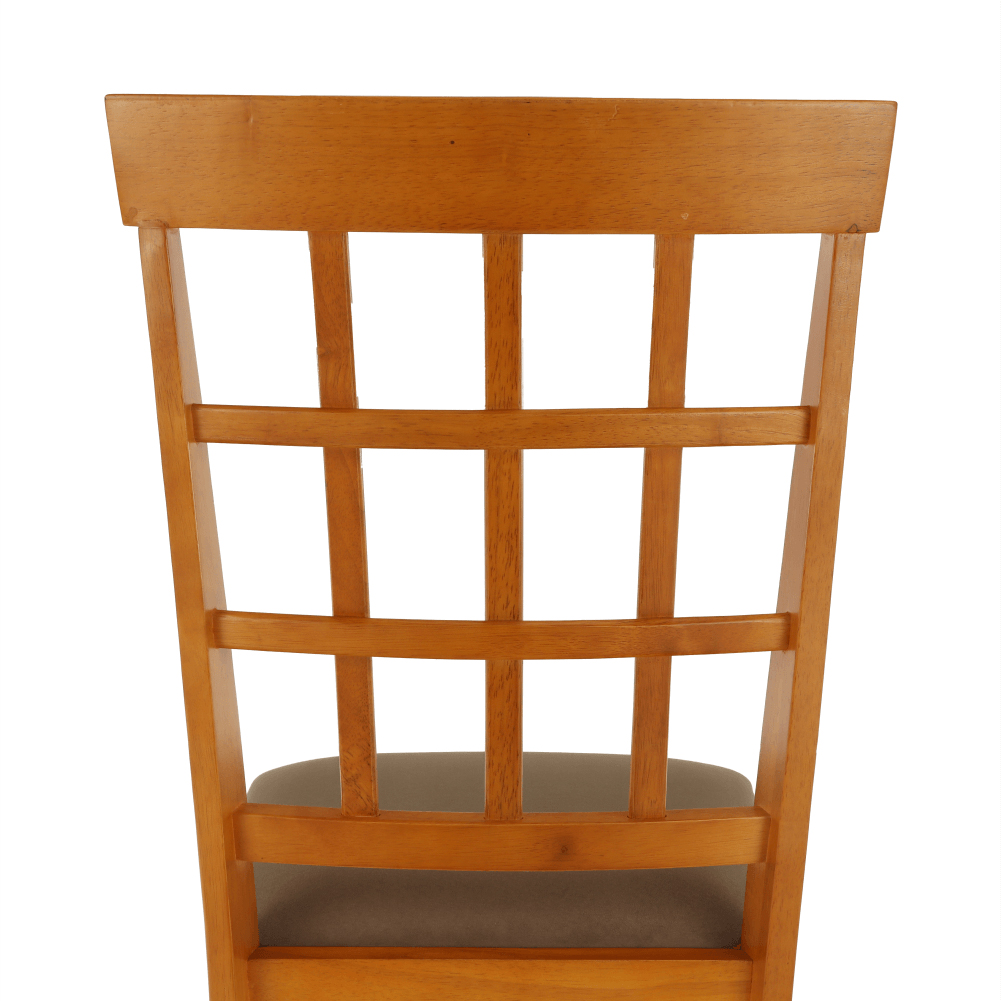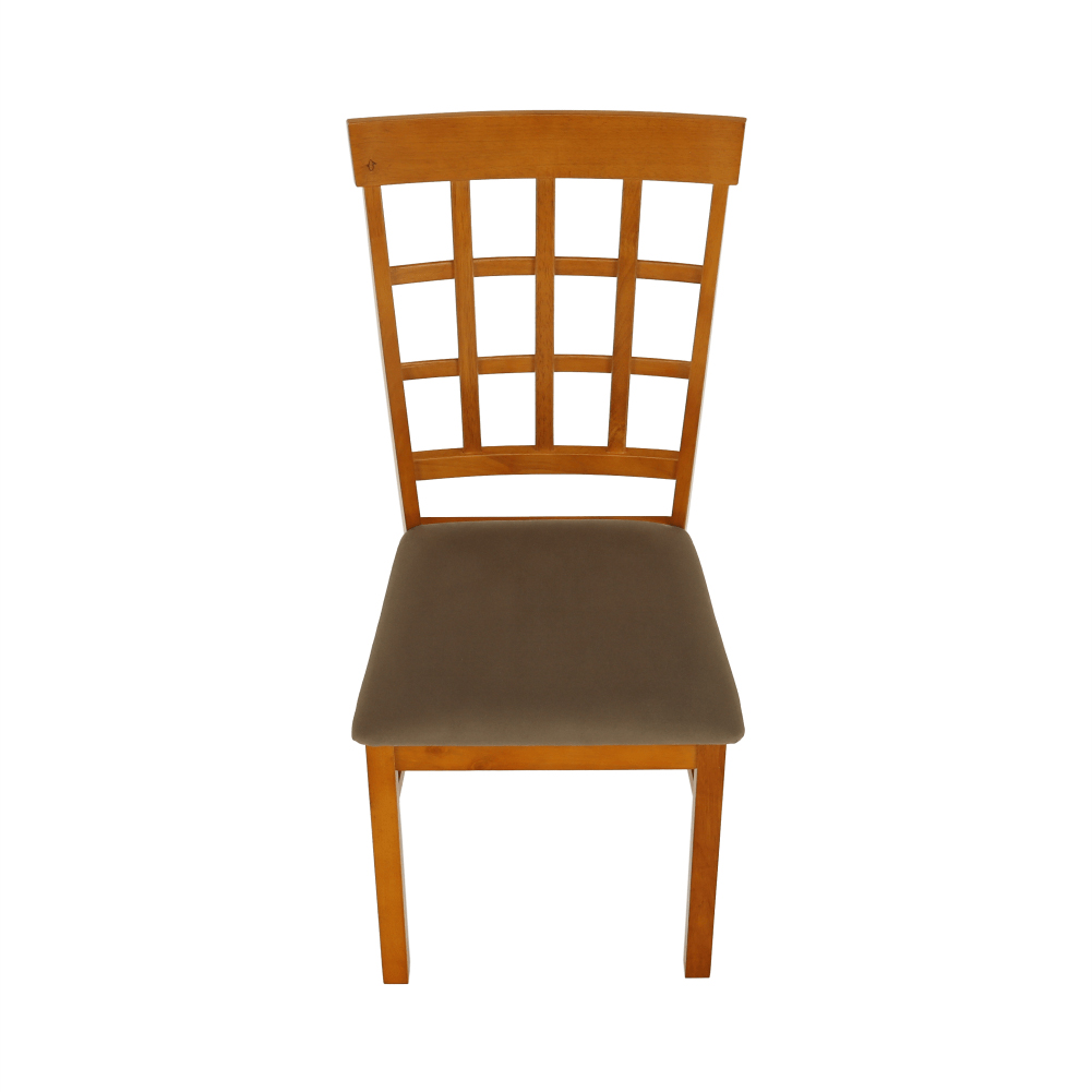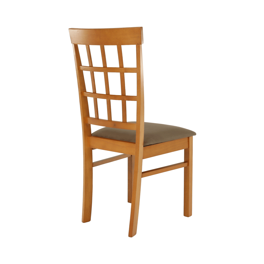 Jedalenská stolička Gris vyniká opierkou v mriežkovanom štýle. Stolička je v prevedení čerešňa a sedák je v slabo hnedej látke.