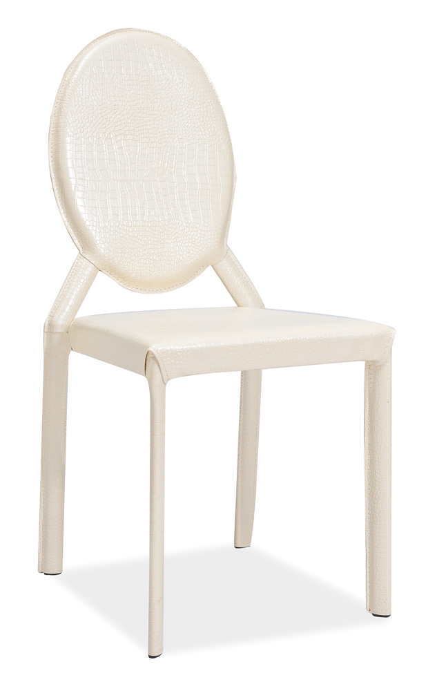Zaujímavá dizajnová stolička H-100 Vás zaujme hlavne nohami, ktoré sú otočené o 45 stupňov do vnútra stoličky. Taktiež operadlo stoličky má pekný a zároveň nevšedný tvar. Stolička je v krémovom prevedení a je potiahnutá koženkou.