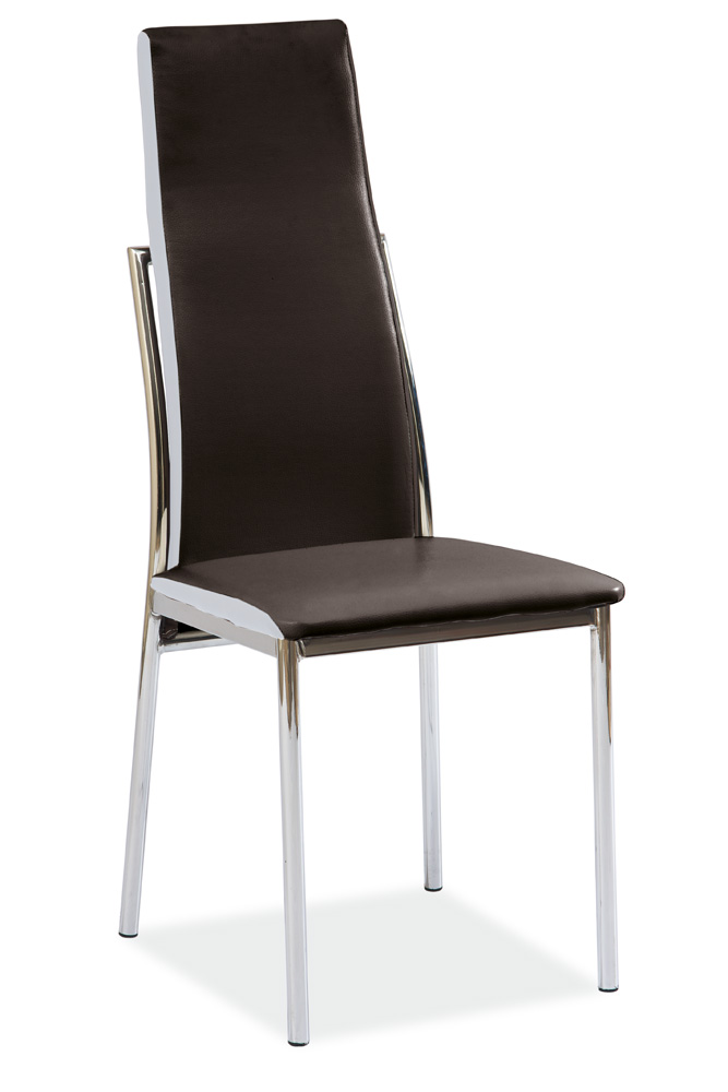 Pekná moderná stolička H-171 s jednoduchým dizajnom vďaka svojmu peknému čiernemu prevedeniu oživí akýkoľvek interiér, v ktorom bude použitá ako doplnok. Stolička je potiahnutá koženkou a kovový rám je vo farebnom prevedení chrómu.