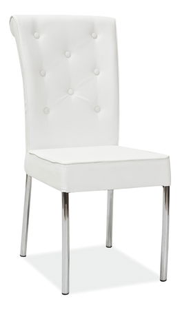 Veľmi pekná stolička H-222 od značky Signal Vás zaujme netradyčným prehnutým operadlom smerom dovnútra. Stolička je v bielom farebnom prevedení potiahnutá koženkou a kovové nohy stoličky sú vo farbe chrómu.