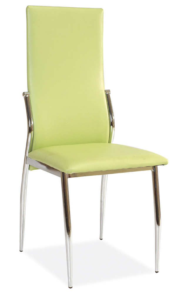 Pekná stolička H-237 s netradičným dizajnovým prvkami od značky Signal. Stolička je potiahnutá koženkou v zelenom farebnom prevedení, netradične je riešená konštrukcia zadných nôh, ktorá je potiahnutá približne do polovice operadla.