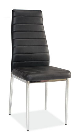 Elegantná čalúnená stolička s predĺženým operadlom pre pohodlné sedenie. Kovová konštrukcia je pochromovaná. Čalúnenie je vyrobené z ekokože čiernej farby. Stolička sa hodí do jedální, kancelárií či zasadacích miestností.