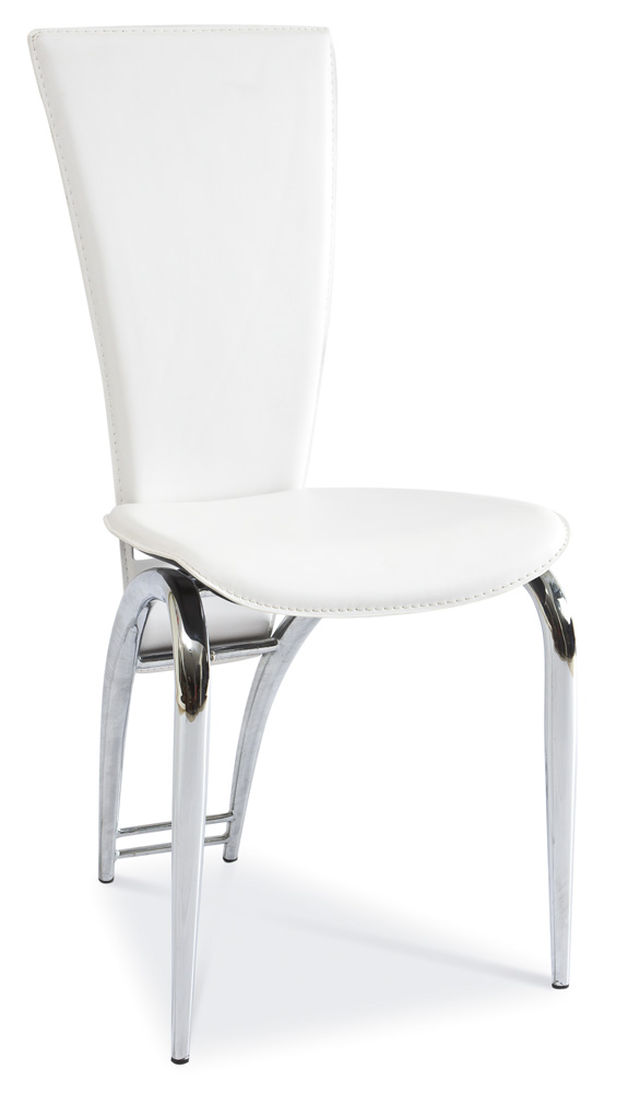 Zaujímavá dizajnová stolička H-37 Vás zaujme svojim prevedením. Kovový rám stoličky je hlavným dizajnovým prvkom vo farebnom prevedení chrómu. Stolička je vo farebnom prevedení bielej a je celá potiahnutá koženkou.