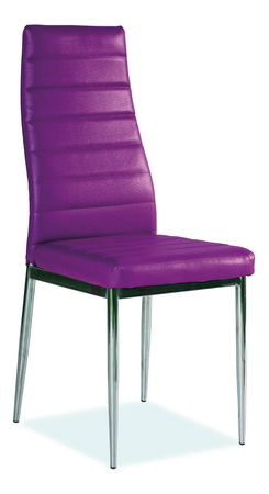 Moderná stolička H-261 od značky Signal je charakteristická svojim vrúbkovaným vzorom na sedáku aj operadle. Stolička je potiahnutá ekokožou a je vo farebnom prevedení fialovej. Nohy stoličky sú kovové vo farebnom prevedení chrómu.